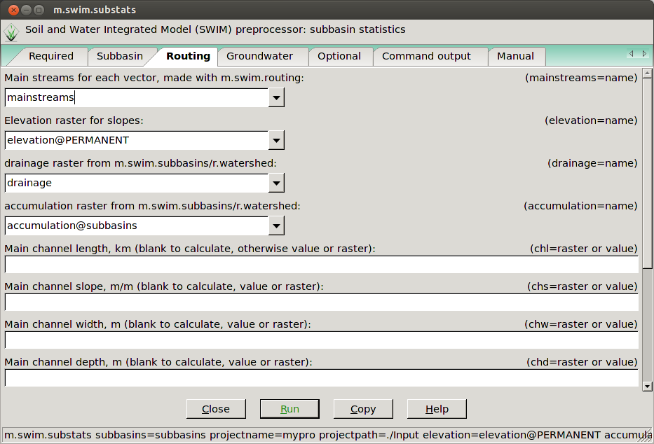 m.swim.routing subbasins=subbasins accumulation=accumulation