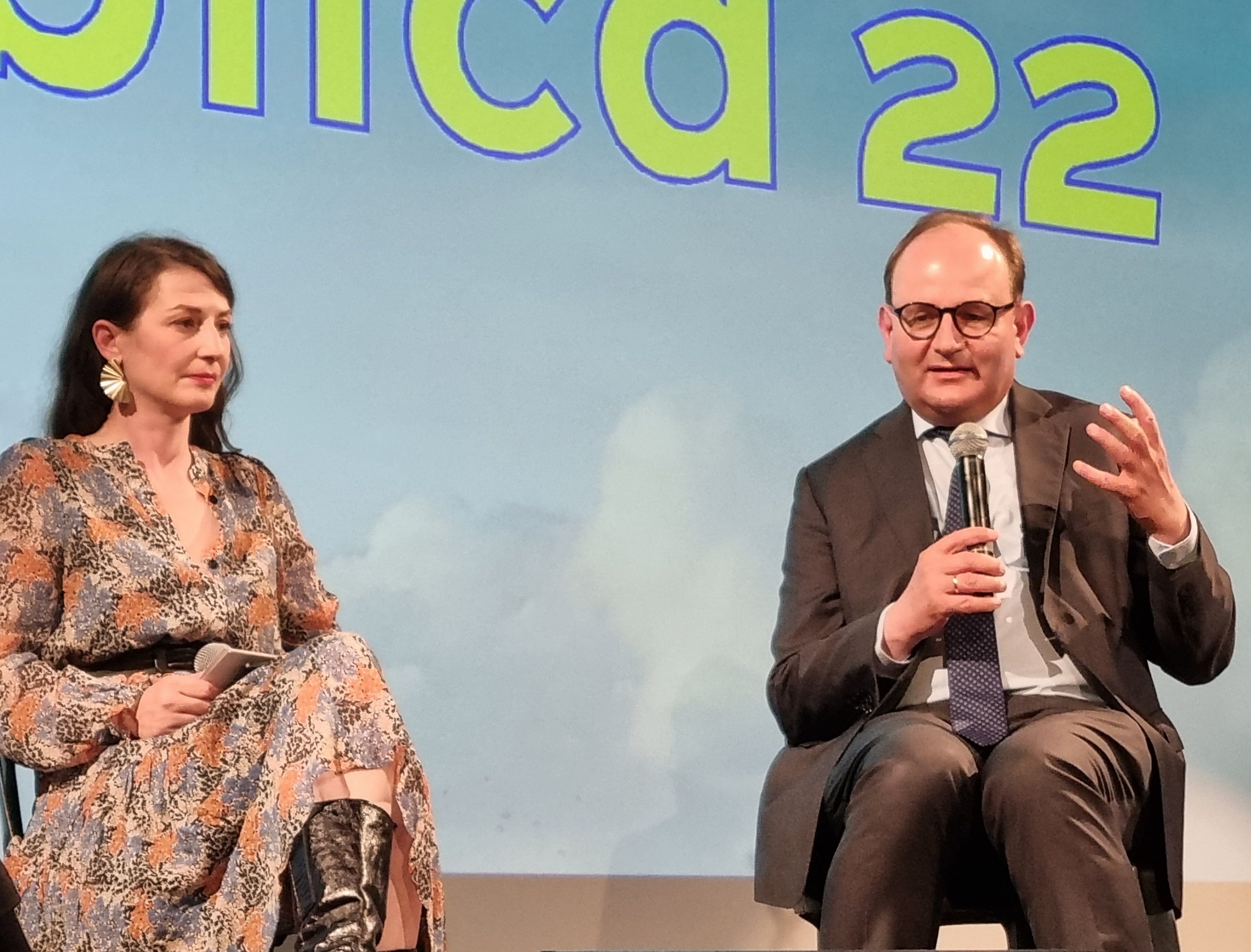 Das von Geraldine de Bastion moderierte Gespräch drehte sich um die Gleichzeitigkeit der Krisen wie den voranschreitenden Klimawandel und die nicht enden wollende Pandemie, vor allem aber auch den russischen Angriffskrieg auf die Ukraine und dessen geopolitische und soziale Folgen. Dabei ging es um Energiesicherheit und den Schutz vernunftbegründeter Demokratien und wie die sozialökologische Transformation trotz aller Widerstände gelingen kann.