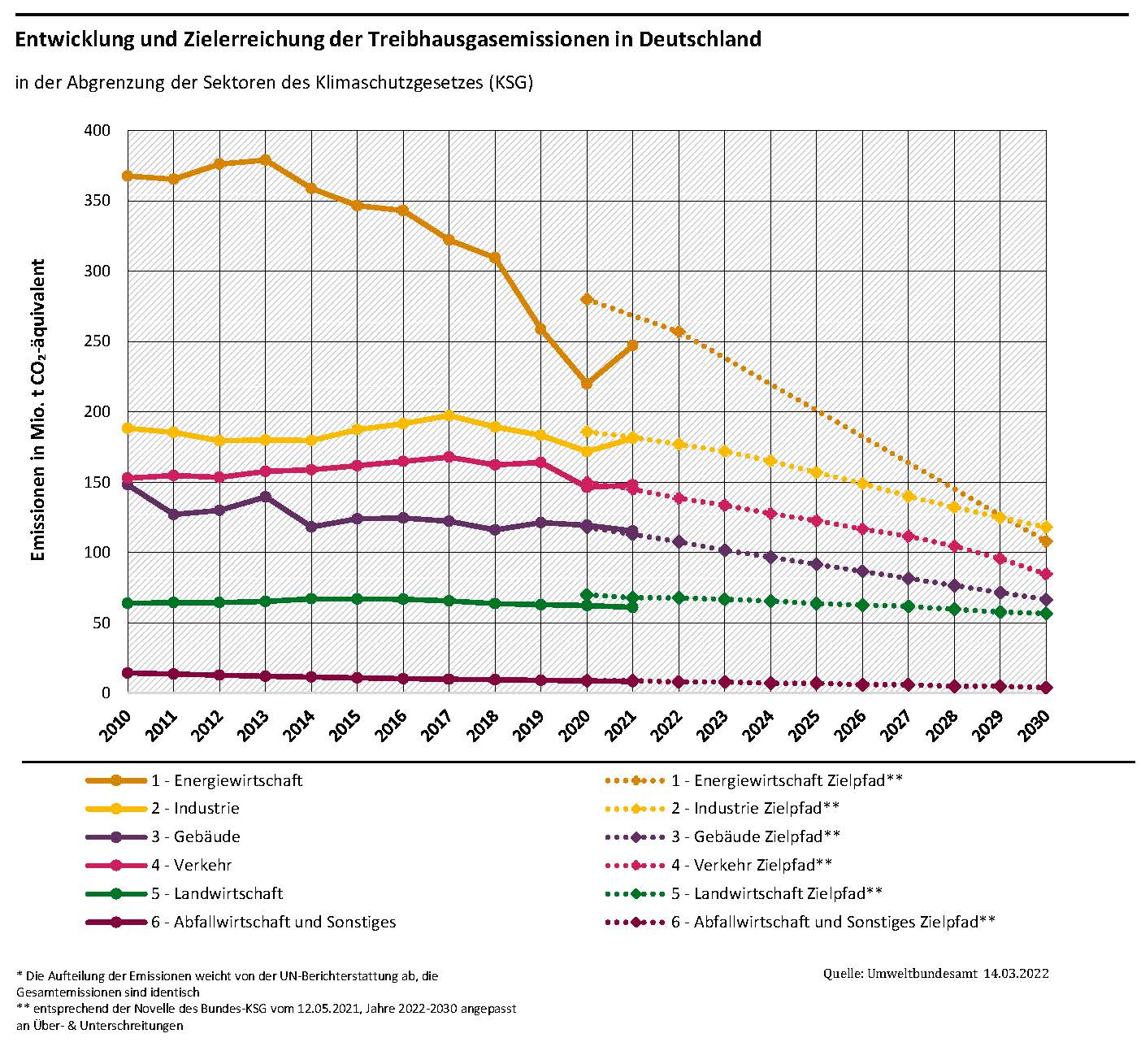 15.03.2022 - Heute hat das Umweltbundesamt seine Treibhausgas-Bilanz 2021 für Deutschland veröffentlicht. Im Unterschied zur weltweiten Entwicklung haben die Emissionen in Deutschland kein neues Allzeithoch erreicht. Sie sind aber gegenüber 2020 gestiegen.
