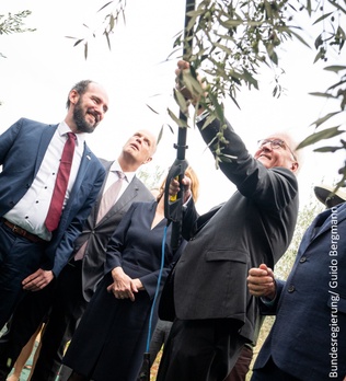 07/11/2024 - Gemeinsam mit dem Bundespräsidenten Frank-Walter Steinmeier hatte Prof. Dr. Christoph Gornott, Leiter der Gruppe Anpassung in Agrarsystemen, die Möglichkeit, sich vor Ort in Griechenland ein Bild von den bereits spürbaren Auswirkungen des Klimawandels auf Olivenbäume zu machen. Während ihres Besuchs diskutierten sie auch über das enorme Potenzial regenerativer Landwirtschaft, die dazu beitragen kann, die Landwirtschaft an sich ändernde Klimabedingungen anzupassen und gleichzeitig CO₂ zu binden.