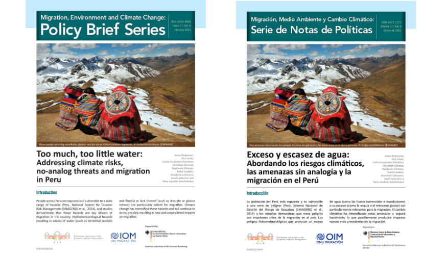 IOM and the Potsdam Institute for Climate Impact Research have partnered to produce this report, which provides a systematic review of the available evidence on the environment, climate change and migration nexus in Peru.