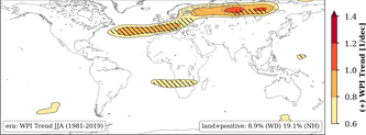 12/06/2021 - Global warming makes long lasting weather situations in the Northern hemisphere‘s summer months more likely – which in turn leads to more extreme weather events, a novel analysis of atmospheric images and data finds. These events include heatwaves, droughts, intense rainy periods. Especially in Europe, but also in Russia, persistent weather patterns have increased in number and intensity over the last decades with weather extremes occurring simultaneously at different locations.