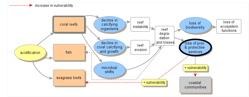 impact chain for tropical coastal areas / acidification (click nodes to view details):