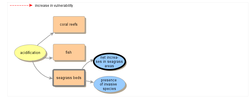 Seagrass ecosystems could be one of the few ecosystems that stand to benefit from increasing levels of CO2 in the seawater. Seagrasses are capable of dehydrating HCO-3, but many appear to use CO2 (aq) for at least 50% of their carbon requirements used for photosynthesis. It is probable that an increase in total seagrass area will lead to more favourable habitat and conditions for associated invertebrate and fish species.