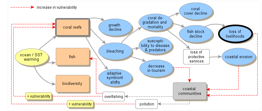 Many corals in this region bleached and subsequently died during the 1998 ENSO events due to the high water temperatures in combination with other meteorological and climatic factors. The secondary socioeconomic effects of coral bleaching for coastal communities of the Indian Ocean are likely to be long lasting and severe. One such impact, which was also observed in the aftermath of the 1998 bleaching events, was the decrease in tourism income due to the changes in reef fish populations that are main attraction for divers.