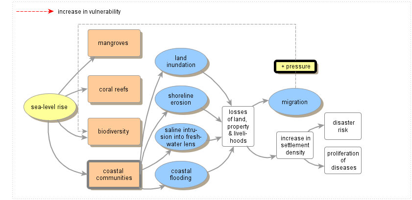 People will have to migrate due to the fact that coastal areas will get inundated and shift their agricultural activities elsewhere. This will increase the pressure on biodiversity and the environment.