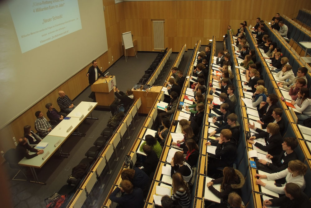 „Die Welt, die wir hinterlassen, wird Ihre Welt sein“, sagte Hans Joachim Schellnhuber, Direktor des PIK, in seiner Begrüßungsrede und ermunterte die Jugendlichen, sich weiterhin aktiv in die Klimadebatte einzubringen. Initiativen wie „jugend denkt um.welt“ gehörten zu den wichtigsten überhaupt und er hoffe, dass sie sich weltweit verbreiteten.