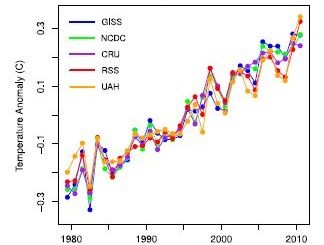 06.12.2011 - Eine neue Analyse von fünf der wichtigsten Temperatur-Datenreihen hat weiteres Stück Klarheit in Sachen Klimawandel gebracht. Trotz mancher Unterschiede zwischen den Messkurven zeigen sie einen nahezu identischen, stetigen globalen Erwärmungs-Trend über die vergangenen dreißig Jahre hinweg. Die Forscher haben drei Faktoren heraus gerechnet, die für kurzfristige Schwankungen verantwortlich sind: El Niño, Vulkanausbrüche und Veränderungen der Sonnenhelligkeit. „Die Unterschiede zwischen den Datenreihen gehen großteils auf ihre kurzfristigen Schwankungen zurück“, sagt Stefan Rahmstorf vom Potsdam-Institut für Klimafolgenforschung, einer der Autoren der Studie. „Wenn man diese Schwankungen heraus nimmt, sind alle fünf sehr ähnlich.“