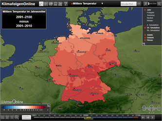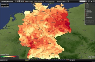 01/12/12 - Erstmals wurden für das neue Internetportal „KlimafolgenOnline“ lokale Folgen des Klimawandels in ganz Deutschland für örtliche Entscheider aufbereitet. Ab sofort geht das Projekt vom Potsdam-Institut für Klimafolgenforschung (PIK) und WetterOnline in die Pilotphase und ist frei nutzbar. Vom Forstwirt bis zum Baudezernenten soll das Portal Nutzern aus allen betroffenen Sektoren verwertbare Informationen in die Hand geben. Möglich sind dabei feine Auflösungen von bis zu zehn mal zehn Kilometern. Das Portal wird derzeit auch auf dem Weltklimagipfel in Doha präsentiert.