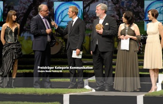11.09.2012 - Die Climate Media Factory ist mit dem Umweltpreis „Clean Tech Media Award“ in der Kategorie Kommunikation ausgezeichnet worden. Der Preis wurde dem Kooperationsprojekt des Potsdam-Instituts für Klimafolgenforschung (PIK) und der Hochschule für Film und Fernsehen „Konrad Wolf“ (HFF) für die „einzigartige Konstellation aus Klimaforschern und Medienschaffenden“ verliehen. Die Preisverleihung im Berliner Tempodrom fand als Umweltgala mit mehr als 1.000 exklusiv geladenen Gästen aus Wirtschaft, Wissenschaft, Politik, Kultur und Medien statt, darunter auch deutsche Filmgrößen wie Christiane Paul, Nora Tschirner oder Hannes Jaenicke.