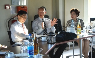16.09.2014 – Der Minister der obersten taiwanischen Umweltschutzbehörde, Kuo-yen Wei, hat sich mit einer hochrangigen Delegation am Potsdam-Institut für Klimafolgenforschung (PIK) über aktuelle Forschungsergebnisse zum Klimawandel informiert. Die 14-köpfige Gruppe umfasste unter anderem auch die Repräsentantin der Taipeh Vertretung in Deutschland Agnes Hwa-Yue Chen, ihren Stellvertreter Klement Gu sowie Wissenschaftler von führenden taiwanischen Universitäten und Wirtschaftsvertreter. PIK-Direktor Hans Joachim Schellnhuber würdigte im Gespräch mit der Gruppe den Einfluss der Insel: "Was Taiwan für den Klimawandel macht, ist bedeutungsvoll."