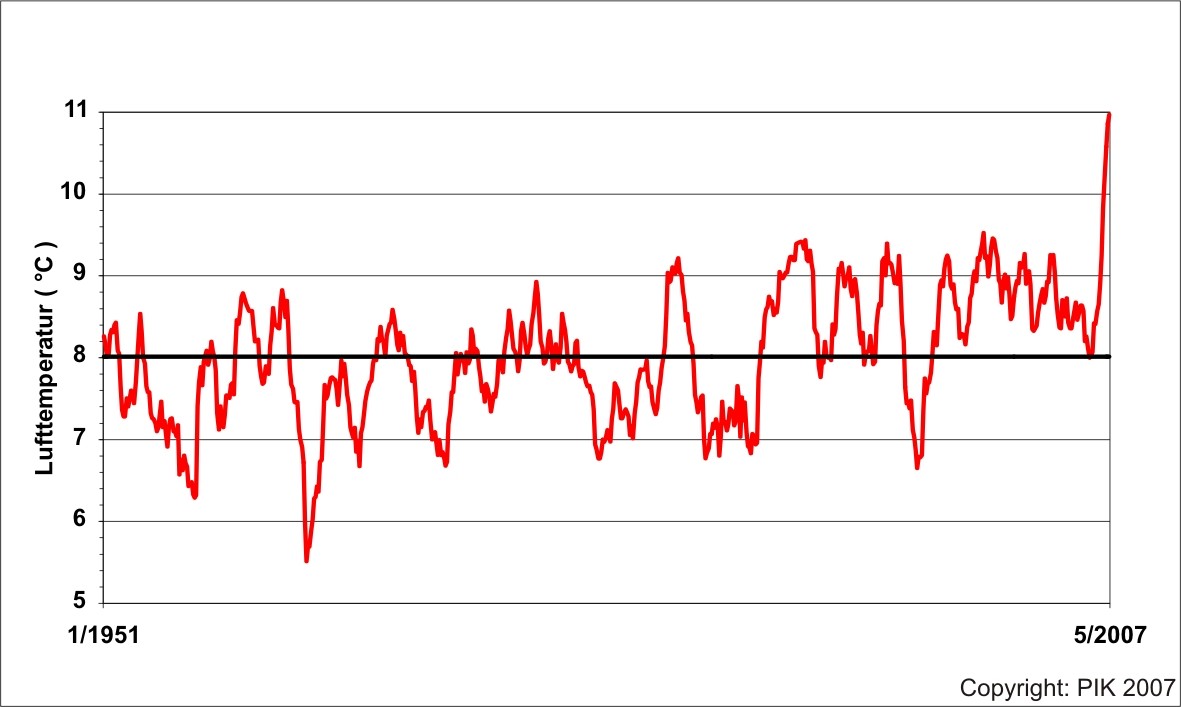 Temperaturentwicklung für Deutschland 01/1951 - 05/2007
