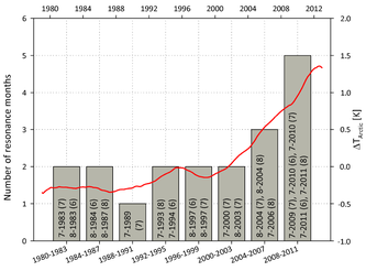 12.08.2014 - In den letzten zehn Jahren hat die Zahl der Wetterextreme im Sommer – wie etwa die Rekord-Hitzewelle 2010 in Osteuropa, die mit Ernteeinbußen und verheerenden Waldbränden um Moskau einherging – ein außergewöhnliches Maß erreicht. Die vom Menschen verursachte globale Erwärmung kann eine graduelle Zunahme solcher Hitzewellen erklären, die beobachtete extreme Stärke und Dauer einiger dieser Ereignisse sind jedoch nicht so leicht zu erklären. Sie werden mit einem neu entdeckten Mechanismus in Verbindung gebracht: dem Aufschaukeln riesiger Wellen in der Atmosphäre. Eine neue Datenanalyse zeigt jetzt, dass solche Resonanzen in den gigantischen, die Nordhalbkugel umkreisenden Luftströmen tatsächlich häufiger werden.