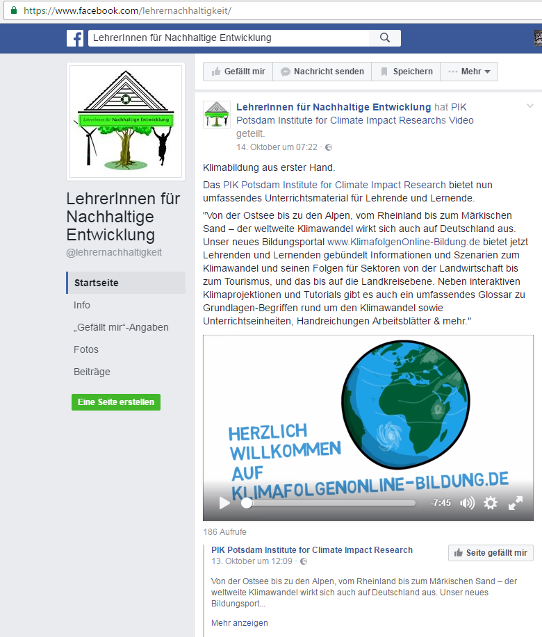 LehrerInnen für Nachhaltige Entwicklung (Facebook), Verweis auf die Freischaltung des Potals (PNG-Datei)