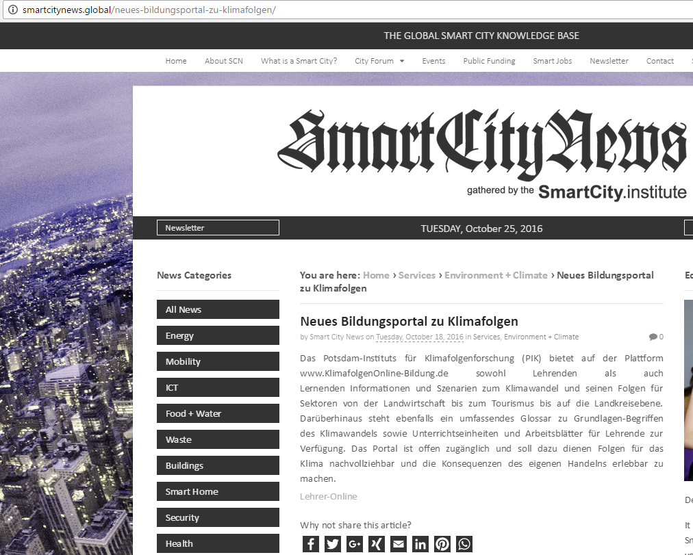 Smart City News, Erwähnung von KlimafolgenOnline (PNG-Datei)