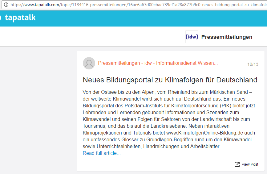 tapatalk, Erwähnung von KlimafolgenOnline (PNG-Datei)