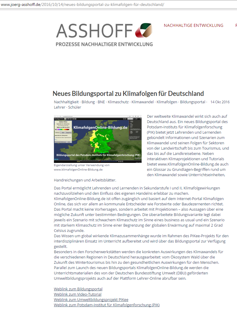 Asshoff - Prozesse nachhaltiger Entwicklung, Vorstellung von KlimafolgenOnline (PNG-Datei)