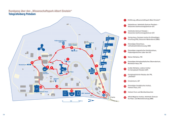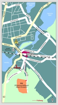 Wenn Sie am Bahnhof Potsdam ankommen, können Sie entweder ein Taxi zum Telegrafenberg nehmen, was zu empfehlen ist, falls Sie schweres Gepäck mitführen oder Sie können zu Fuß gehen, was einen Fußweg von ca. 15 Minuten bedeutet.