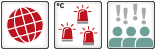 | Die Warnleuchten zeigen an, wie nah der Schwellenwert für das wahrscheinliche Kippen an der bereits heute beobachteten globalen Erwärmung liegt. Bislang beträgt diese im weltweiten Mittel 1,2 Grad, mit weiterhin steigender Tendenz. | |