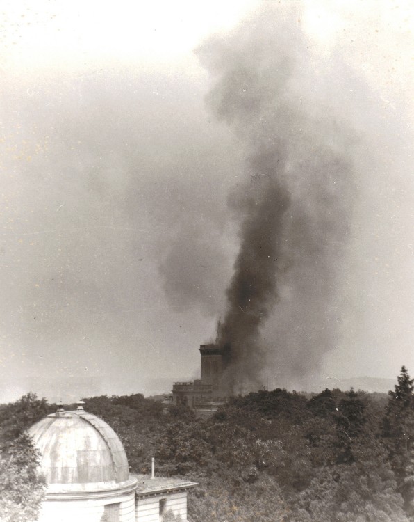 Im 2. Weltkrieg, am 21.Juni 1944 erhält das Gebäude des MOP während eines Luftangriffes der Englander 2 Brandbombentreffer, die einen Dachstuhlbrand auslösen. Im Sommer desselben Jahres wurde ein einfaches Holzdach wiederhergestellt. Die durch den Krieg zerstörten Fensterscheiben sind teilweise mit Fotoplatten der Wolkenaufnahmen ersetzt worden.