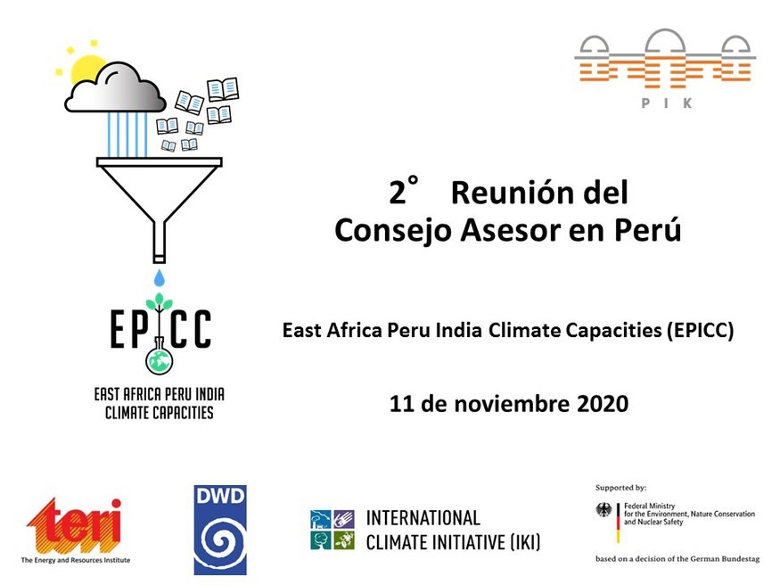 During these difficult times of global pandemic coupled with economic and political uncertainties, Peru continues to develop strategic responses to the biggest threat of the 21st century – climate change. The country seeks to develop policies and formulate decisions for effective climate change adaptation, based on the best available scientific evidence. Under this agenda, the Second Meeting the Peruvian Advisory Board and scientists of the East Africa Peru India Climate Capacities Project (EPICC) took place on the 11th of November, 2020. The meeting gathered over 20 participants from leading national organizations involved in planning and management of climate adaptation in Peru, such as the Ministry of Environment (MINAM), National Service for Meteorology and Hydrology in Peru (SENAMHI) and National Water Authority (ANA), as well as international organizations such as the International Organization for Migration (IOM), German Development Agency (GIZ), CARE and MeteoSwiss.