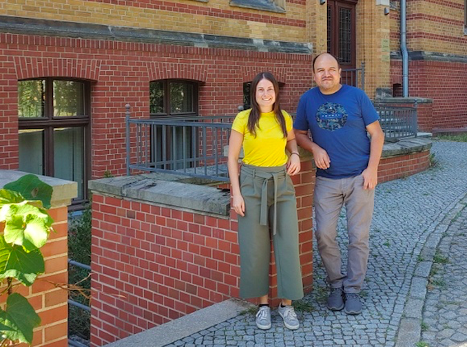 Dr. Erickson Urquiaga (r) and B-EPICC scientist Sarah Bereswill (l) at PIK. ©B-EPICC