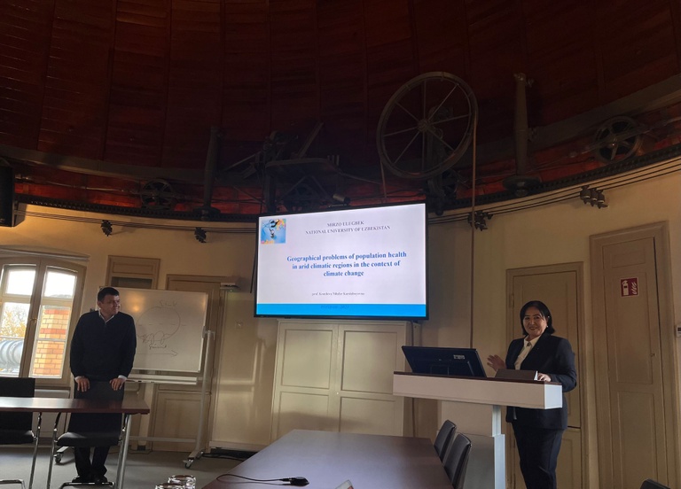 The event also aimed to provide insights into how the region can adapt and mitigate the impacts of climate change. It commenced with a warm welcome speech from the project leader, Dr. Iulii Didovets. He introduced the overview of PIK and the research conducted at the institution. He also explained the Green Central Asia project and its working packages to the guests. Twelve insightful talks were presented at the event, covered a range of topics and addressed the various issues, including the impacts and extremes of climate change, security, health, agricultural water management, monitoring of water resources and water availability in Kazakhstan, and Uzbekistan. The event concluded with an enthusiastic discussion, where participants shared innovative ideas and valuable insights on how their countries could work together to mitigate the impacts of climate change. The atmosphere was enthusiastic, with many proposing potential cooperation and further knowledge exchange to strengthen relationships within the region. Participants of the delegation included Prof. Dr. Fazliddin Khikmatov, Dr. Gulomjon Umirzakov, Prof. Dr. Nilufar Komilova from the National University of Uzbekistan, Dr. Tursunova Aisulu, Saparova Assel, and Salavatova Zhanat from the Institute of Geography and Water Security Science. Additionally, Dr. Larissa Kogutenko and Dr. Viktoriya Krylova were present from Kazakh-German University, while Dr. Abror Gafurov represented the German Research Centre for Geosciences (GFZ).