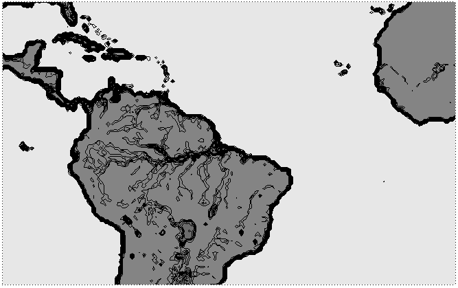 Our approach is a static one, it is not very well suited to handle dynamic load imbalances. The first test variant is a square domain decomposition (e.g. NX = 4, NY = 4) , the second test variant is a rectangular domain decomposition over complete latitudes (e.g. NX = 1, NY = 16). Mainly our model area covers the area of South America and the Southern Atlantic (193 longitudes, 121 latitudes, see Figure 4, "Investigated model area").