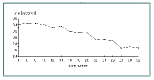 These facts do not apply to the Eulerian time step. The elapsed time distribution between processors is much more homogeneous generally. An explanation for the differences are the facts that the subdomains are not absolute identical and that the boundary lines of the total domain are treated differently in the algorithms than the grid points in the interior of the domain.