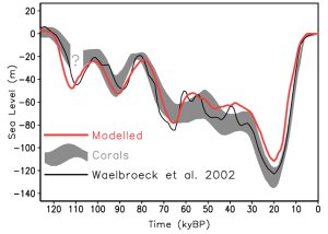 cycle with the CLIMBER-2 model (red curve) as compared to