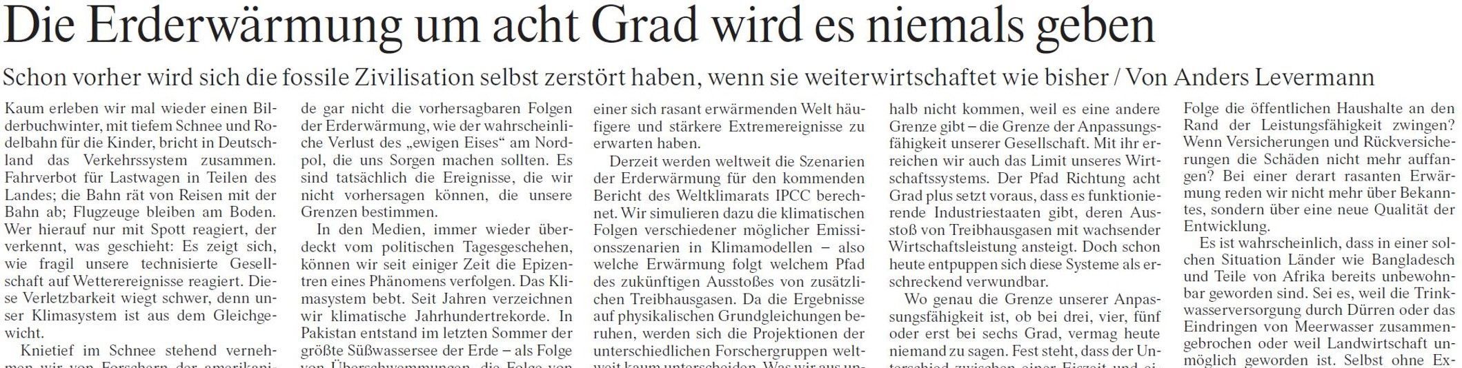 » November '23 How to limit right? » November '23 Interview: Avoid the collapse » November '23 When Limits Free: economic growth and climate crisis » October '23 Interview 'Der Spiegel': Folding the World » October '23 Book review: Folding the World » October '23 Book review: Folding the World » October '23 Book review: Folding the World » October '23 40-min Podcast: Folding the World » October '23 Interview: Can the world be saved? » September '23 Republica Hamburg 2023: Folding the World » August '23 Record heat in the world ocean » August '23 World ocean warmer than ever » July '23 Mosse Lecture: Folding the World » July '23 "Come On!" » July '23 Climate scientists see economy threatened » July '23 "What's happening in the North Atlantic is worriesome" » July '23 Handelsblatt Podcast on tipping points » June '23 Republica 2023: Folding the World » June '23 Pressure in the system: record warming of global ocean » May '23 El Nino causes trillions in lost economic growth » May '23 Economic loss from El Nino » May '23 Oceanic heat can cause weather extremes » May '23 Oceanic heat record » April '23 taz lab 2023: Folding the World » March '23 Dresdner speech at theater on Folding the World » March '23 Interview on climate change and abstinence » February '23 Interview on climate change and Folding » January '23 The future of Thwaites glacier in Antarctica » November '22 2-h interview: The Folding of the World » November '22 Quand la température monte, la haine en ligne aussi » November '22 Global toll of extreme heat is trillions of dollars » October '22 Economic losses from weather extremes » October '22 Hotter days bring out hotter tempers » October '22 The Monsoon Is Becoming More Extreme » September '22 Global warming and aggressive behaviour » September '22 Hate speech on social networks increases with heat » September '22 Extreme Temperatures Linked to Rise in Hate Tweets » September '22 Pakistan flood: climate change increases variability » September '22 Climate Change Is Making People Angrier Online » September '22 Hatespeech online: heat makes tweets more aggressive » September '22 Online hate speech increases during extreme weather » September '22 Hateful tweets multiply in extreme temperatures » September '22 When temperatures rise, hate increases » August '22 La Nina, extreme weather and climate change » August '22 US climate deal tries to induce structural change » June '22 How does Bangladesh cope with extreme flood? » June '22 Floods in Bangladesh conjure climate warnings » June '22 Rain-triggered floods in Bangladesh » February '22 Extreme rainfall can hamper global economy » February '22 More rainy days could dampen economic growth » February '22 More wet days will hamper global economy » February '22 India will lose from global warming » January '22 Rain in Spain causes financial pain » January '22 Change in daily rainfall hurts economy » January '22 Nature cover story on economic impact of rainy days » January '22 Live radio: Antarctic break-up » November '21 Prime-time TV Interview on climate conference COP26 » October '21 RippleResonance: climate change more expensive » October '21 RippleResonance: climate crisis threatens world economy » October '21 America's dirty divide: Sea level rise and famous sites » October '21 Our underwater future: Sea level rise around the world » October '21 Sea Level will hugely differ if we can limit warming » October '21 The ultimate rise of the oceans » October '21 World Under Water » September '21 Sea level rise threatens Venice » August '21 "Race against time" - adaptation to climate change » August '21 Cover article on climate tipping points » August '21 Prime-time TV Interview on IPCC report » June '21 Indian monsoon more intense & chaotic under warming » June '21 Climate change is remaking South Asian monsoon » June '21 "Earth will get as warm as we make it." » June '21 Domino effect of tipping points » June '21 Warming likely to make Indian monsoon dangerous » June '21 Million years of data confirms: monsoon to get worse » April '21 Monsoon: Serious consequences for a billion people » April '21 Chaotic monsoon threatens India's farmers » April '21 Climate change makes monsoon stronger, more erratic » April '21 Contagious solar cells: Satellite data & AI on Fresno » April '21 Climate change changes Indian monsoon » April '21 Indian monsoon gets more rainy with warming » April '21 Indian monsoon more volatile » April '21 'Chaotic' monsoons threaten India's farmers » April '21 Chaotic monsoon » April '21 Indian monsoon more chaotic » April '21 Antarctic tipping points » February '21 Climate change has high cost » January '21 Portrait: Anders Levermann » November '20 Is the 1.5 degree target feasible? » November '20 Interview on limit of adaptation, Fridays and Green Party » November '20 Invited speech at Green Party Convention » October '20 Antarctic ice loss » October '20 Podcast interview on Antarctica & warming » September '20 Rising temperature could melt Antarctica » September '20 Antarctic ice loss is irreversible » September '20 Even Paris Agreement threatens New York » September '20 Humanity is giving up New York » September '20 Nature cover story on hysteresis of Antarctic ice sheet » August '20 Warming intensifies river floods in China » August '20 Interview: "Why not less, but zero emissions?" » August '20 European heat wave and drought » July '20 "Antarctica is by far the biggest risk" » July '20 Interview in Russian on Siberian heat wave » July '20 The next five years of climate change » July '20 WMO 5-year climate prediction » July '20 Siberian heatwave puzzles climate scientists » July '20 Live radio: Heatwave in Sibiria » June '20 Collapse of Arctic system?