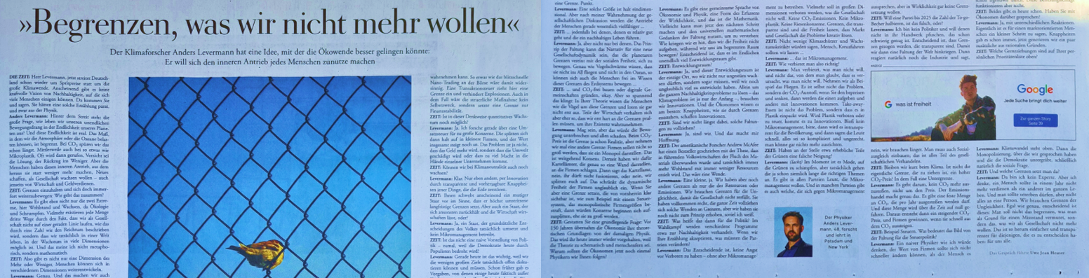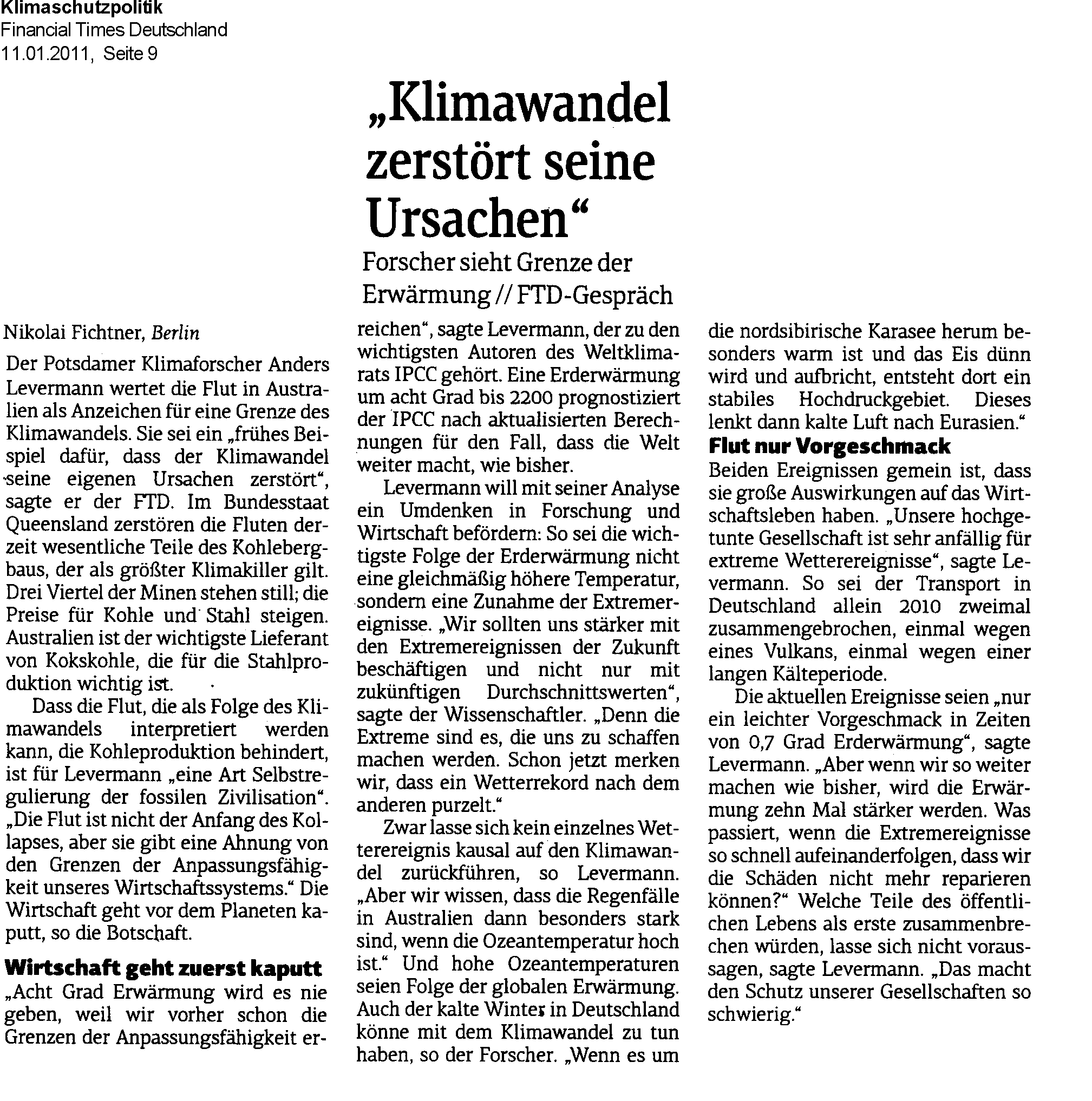 » November '25 Discussion with Robert Habeck and Florence Gaub » November '25 Climate conference and sea level rise » October '25 10-min interview on hurricanes, focus on hurricane Mellissa » May '25 25-min Podcast: Monsoon & atmospheric memory » November '24 Earth's warming above 1.5 degrees » November '24 2024 warming above 1.5 degrees » November '24 Global warming of 1.5 degrees practically certain » September '24 Economic global warming risk rises most for the rich » June '24 Climate will cost global economy $38 trillion every year » June '24 Era of super-wild weather is here » May '24 One-hour podcast on folding the world » April '24 Climate crisis: incomes to diminish by a fifth by 2050 » April '24 World economy strongly reduced by climate change » April '24 Climate change will make you poorer » April '24 World economy slowed down by climate change » April '24 Climate change costs global economy trillions » February '24 The Atlantic: If Trump wins - climate » February '24 Podcast: Folding the World as a utopia » November '23 How to limit right? » November '23 Interview: Avoid the collapse » November '23 When Limits Free: economic growth and climate crisis » October '23 Interview 'Der Spiegel': Folding the World » October '23 Book review: Folding the World » October '23 Book review: Folding the World » October '23 Book review: Folding the World » October '23 40-min Podcast: Folding the World » October '23 Interview: Can the world be saved? » September '23 Republica Hamburg 2023: Folding the World » August '23 Record heat in the world ocean » August '23 World ocean warmer than ever » July '23 Mosse Lecture: Folding the World » July '23 "Come On!" » July '23 Climate scientists see economy threatened » July '23 "What's happening in the North Atlantic is worriesome" » July '23 Handelsblatt Podcast on tipping points » June '23 Republica 2023: Folding the World » June '23 Pressure in the system: record warming of global ocean » May '23 El Nino causes trillions in lost economic growth » May '23 Economic loss from El Nino » May '23 Oceanic heat can cause weather extremes » May '23 Oceanic heat record » April '23 taz lab 2023: Folding the World » March '23 Dresdner speech at theater on Folding the World » March '23 Interview on climate change and abstinence » February '23 Interview on climate change and Folding » January '23 The future of Thwaites glacier in Antarctica » November '22 2-h interview: The Folding of the World » November '22 Quand la température monte, la haine en ligne aussi » November '22 Global toll of extreme heat is trillions of dollars » October '22 Economic losses from weather extremes » October '22 Hotter days bring out hotter tempers » October '22 The Monsoon Is Becoming More Extreme » September '22 Global warming and aggressive behaviour » September '22 Hate speech on social networks increases with heat » September '22 Extreme Temperatures Linked to Rise in Hate Tweets » September '22 Pakistan flood: climate change increases variability » September '22 Climate Change Is Making People Angrier Online » September '22 Hatespeech online: heat makes tweets more aggressive » September '22 Online hate speech increases during extreme weather » September '22 Hateful tweets multiply in extreme temperatures » September '22 When temperatures rise, hate increases » August '22 La Nina, extreme weather and climate change » August '22 US climate deal tries to induce structural change » June '22 How does Bangladesh cope with extreme flood? » June '22 Floods in Bangladesh conjure climate warnings » June '22 Rain-triggered floods in Bangladesh » February '22 Extreme rainfall can hamper global economy » February '22 More rainy days could dampen economic growth » February '22 More wet days will hamper global economy » February '22 India will lose from global warming » January '22 Rain in Spain causes financial pain » January '22 Change in daily rainfall hurts economy » January '22 Nature cover story on economic impact of rainy days » January '22 Live radio: Antarctic break-up » November '21 Prime-time TV Interview on climate conference COP26 » October '21 RippleResonance: climate change more expensive » October '21 RippleResonance: climate crisis threatens world economy » October '21 America's dirty divide: Sea level rise and famous sites » October '21 Our underwater future: Sea level rise around the world » October '21 Sea Level will hugely differ if we can limit warming » October '21 The ultimate rise of the oceans » October '21 World Under Water » September '21 Sea level rise threatens Venice » August '21 "Race against time" - adaptation to climate change » August '21 Cover article on climate tipping points » August '21 Prime-time TV Interview on IPCC report » June '21 Indian monsoon more intense & chaotic under warming » June '21 Climate change is remaking South Asian monsoon » June '21 "Earth will get as warm as we make it." » June '21 Domino effect of tipping points » June '21 Warming likely to make Indian monsoon dangerous » June '21 Million years of data confirms: monsoon to get worse » April '21 Monsoon: Serious consequences for a billion people » April '21 Chaotic monsoon threatens India's farmers » April '21 Climate change makes monsoon stronger, more erratic » April '21 Contagious solar cells: Satellite data & AI on Fresno » April '21 Climate change changes Indian monsoon » April '21 Indian monsoon gets more rainy with warming » April '21 Indian monsoon more volatile » April '21 'Chaotic' monsoons threaten India's farmers » April '21 Chaotic monsoon » April '21 Indian monsoon more chaotic » April '21 Antarctic tipping points » February '21 Climate change has high cost » January '21 Portrait: Anders Levermann » November '20 Is the 1.5 degree target feasible? » November '20 Interview on limit of adaptation, Fridays and Green Party » November '20 Invited speech at Green Part