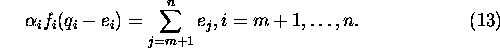 It is obvious that the number m separates the set of actors on two subsets: the first subset (with the numbers from 1 to m) is a community of super-altruists who reduce their emissions to zero, not depending on the behaviour of members of the second egoistic community (with the numbers from m+1 to n). In turn, the members of the egoistic community play their own game, not taking into consideration members of the first community. Note that the separation on the two communities can be done only a posteriori after the solution of (13) for different m is obtained and after the consequent test of the inequalities (14).