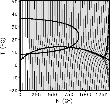 equilibria are stable, the ``cold desert'' with N=0 and the ``cold'' planet with N>0. The