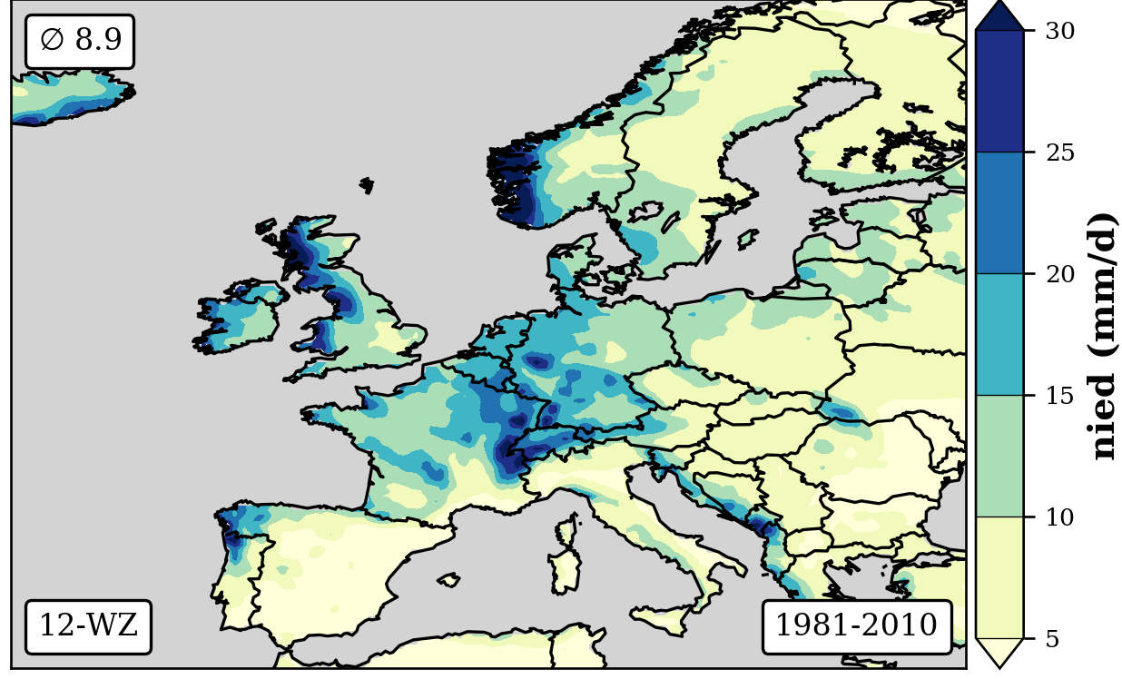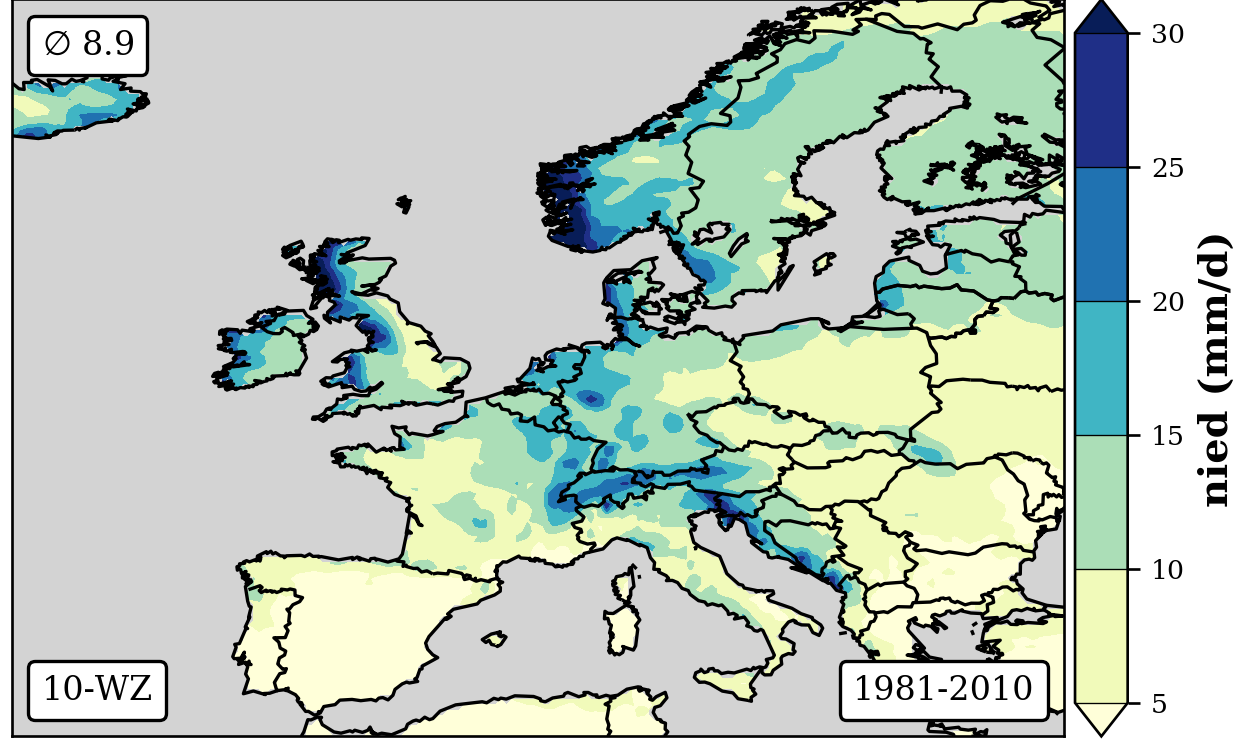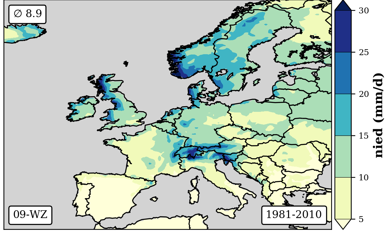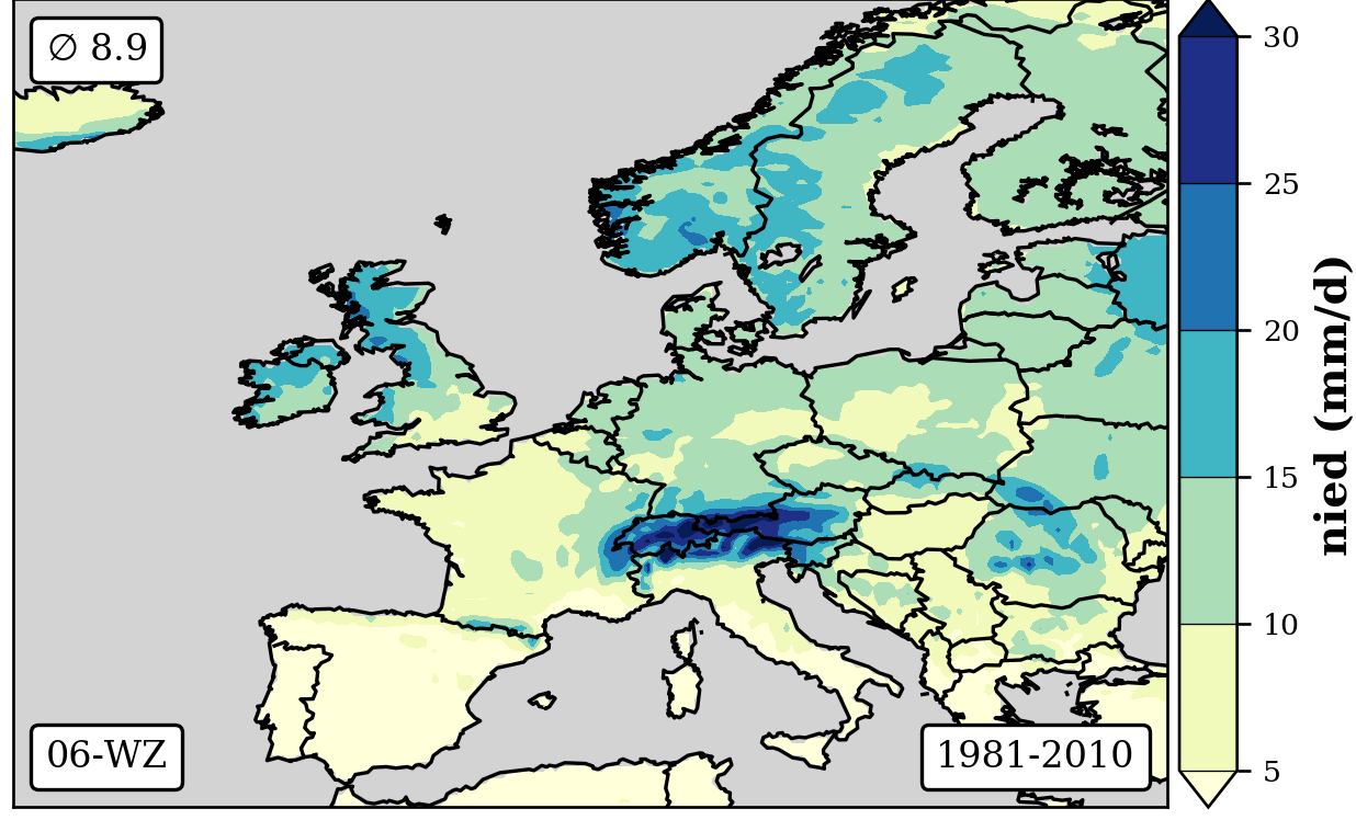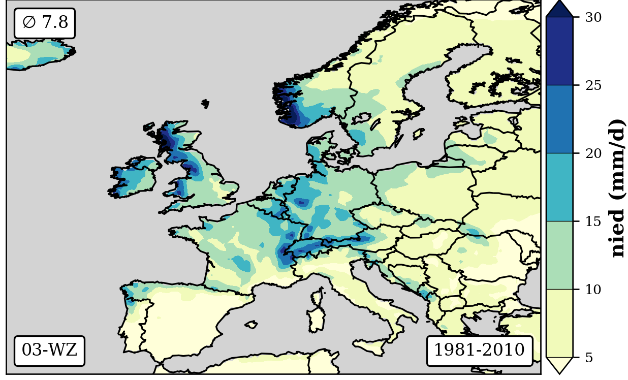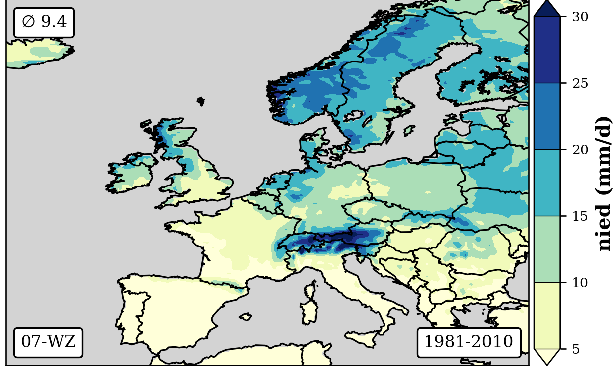 1981-2010 long-term averaged daily precipitation patterns per month and weather-type