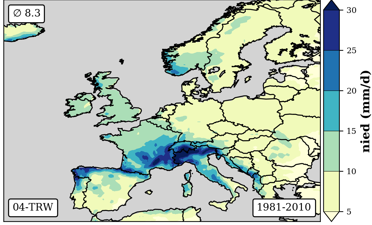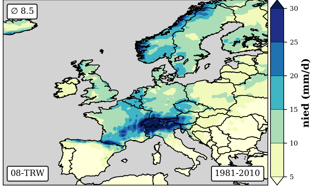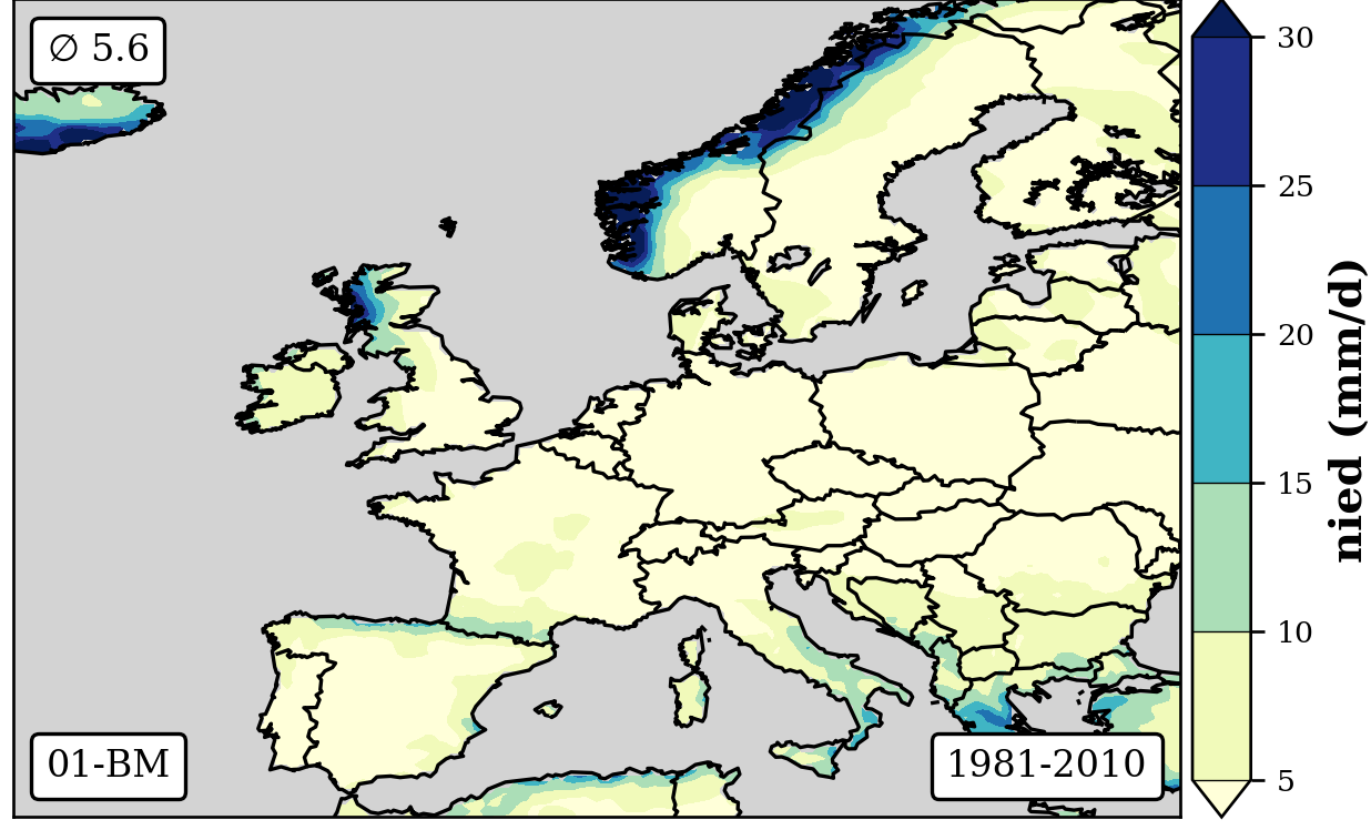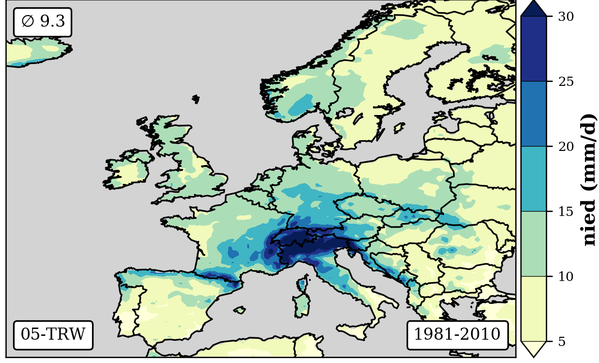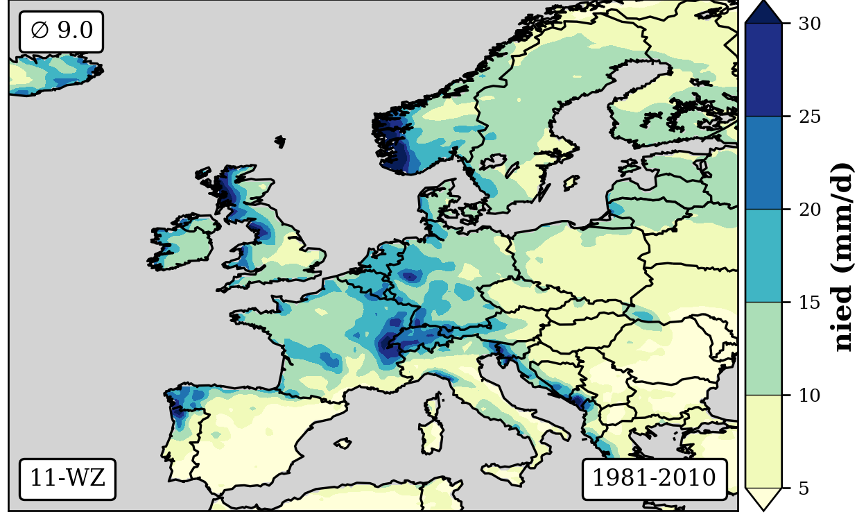 1981-2010 long-term averaged daily precipitation patterns per month and weather-type