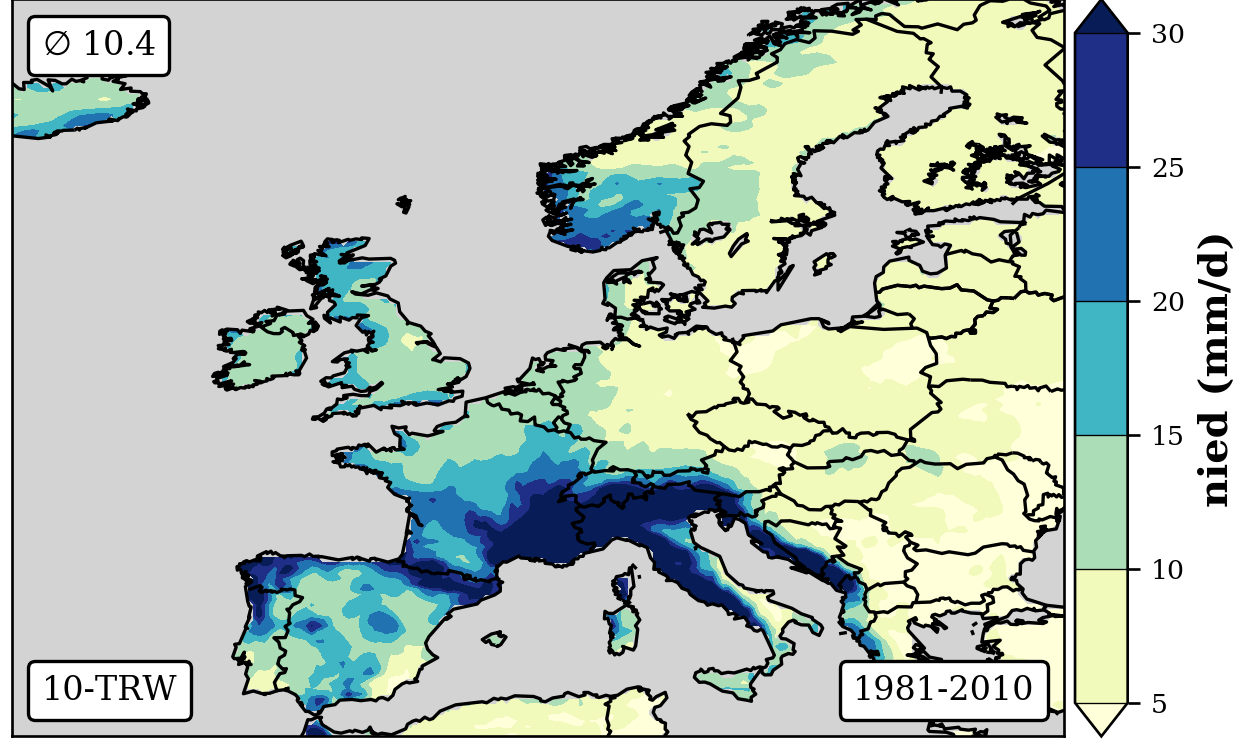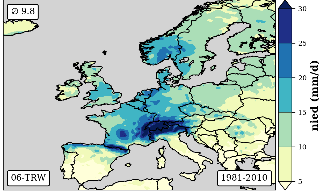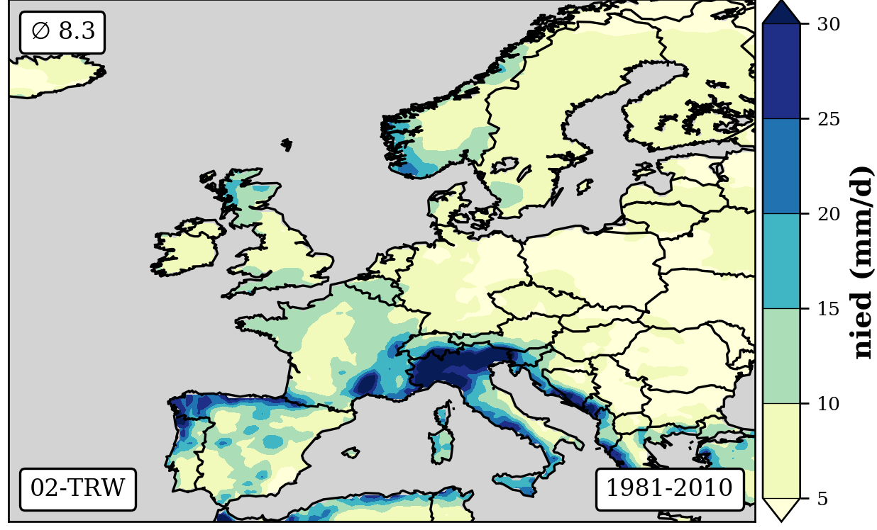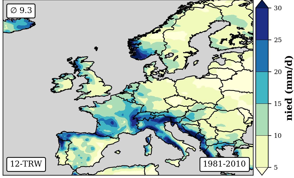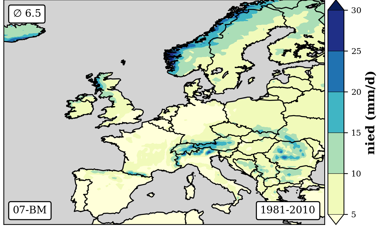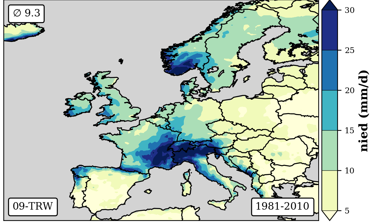 1981-2010 long-term averaged daily precipitation patterns per month and weather-type