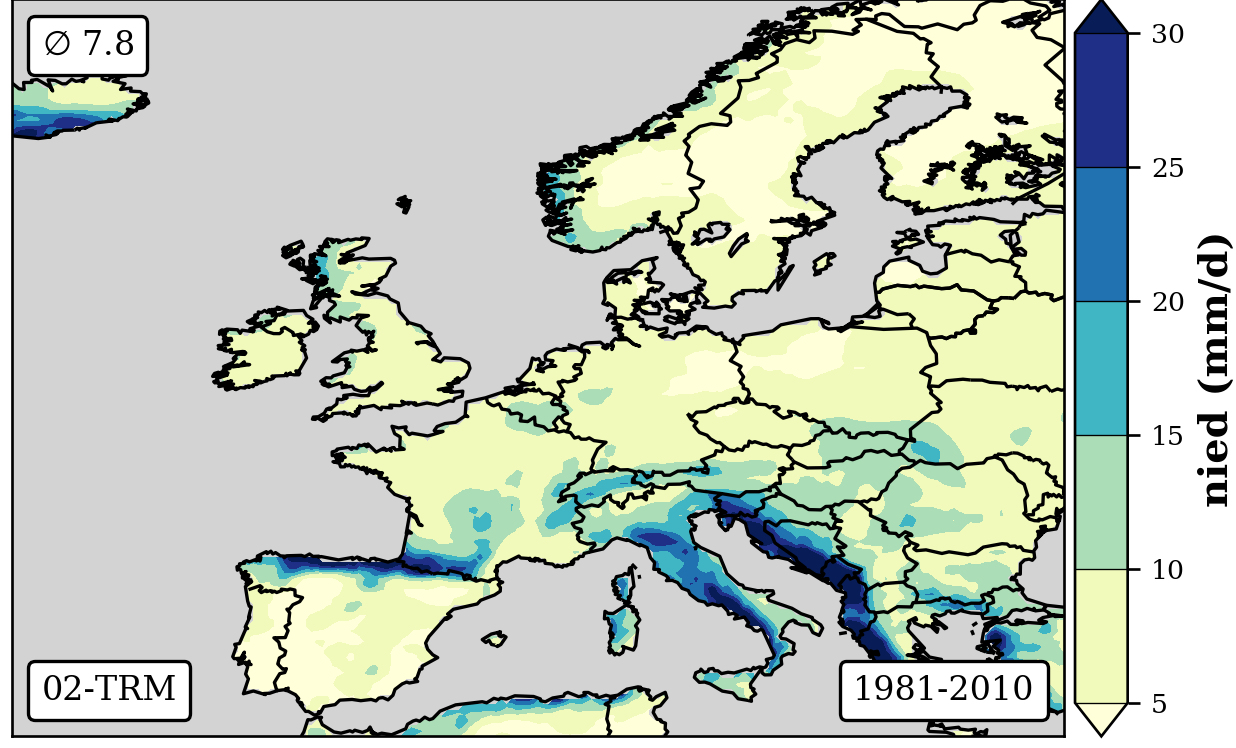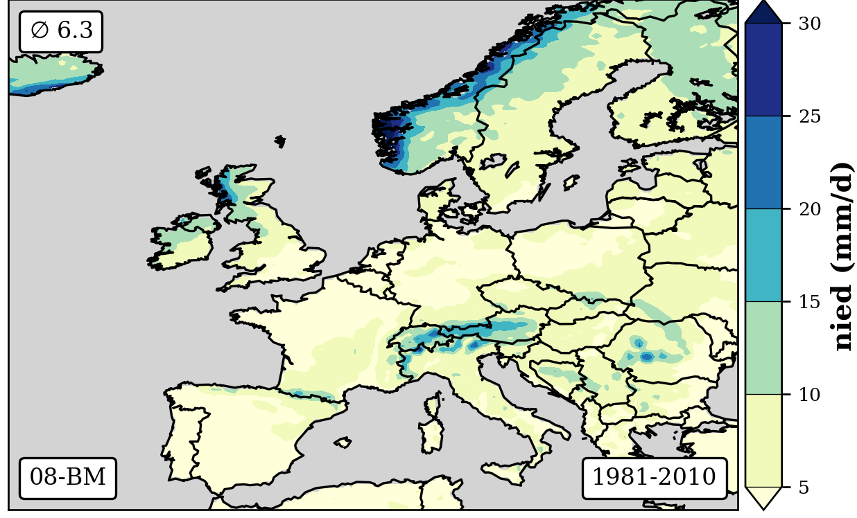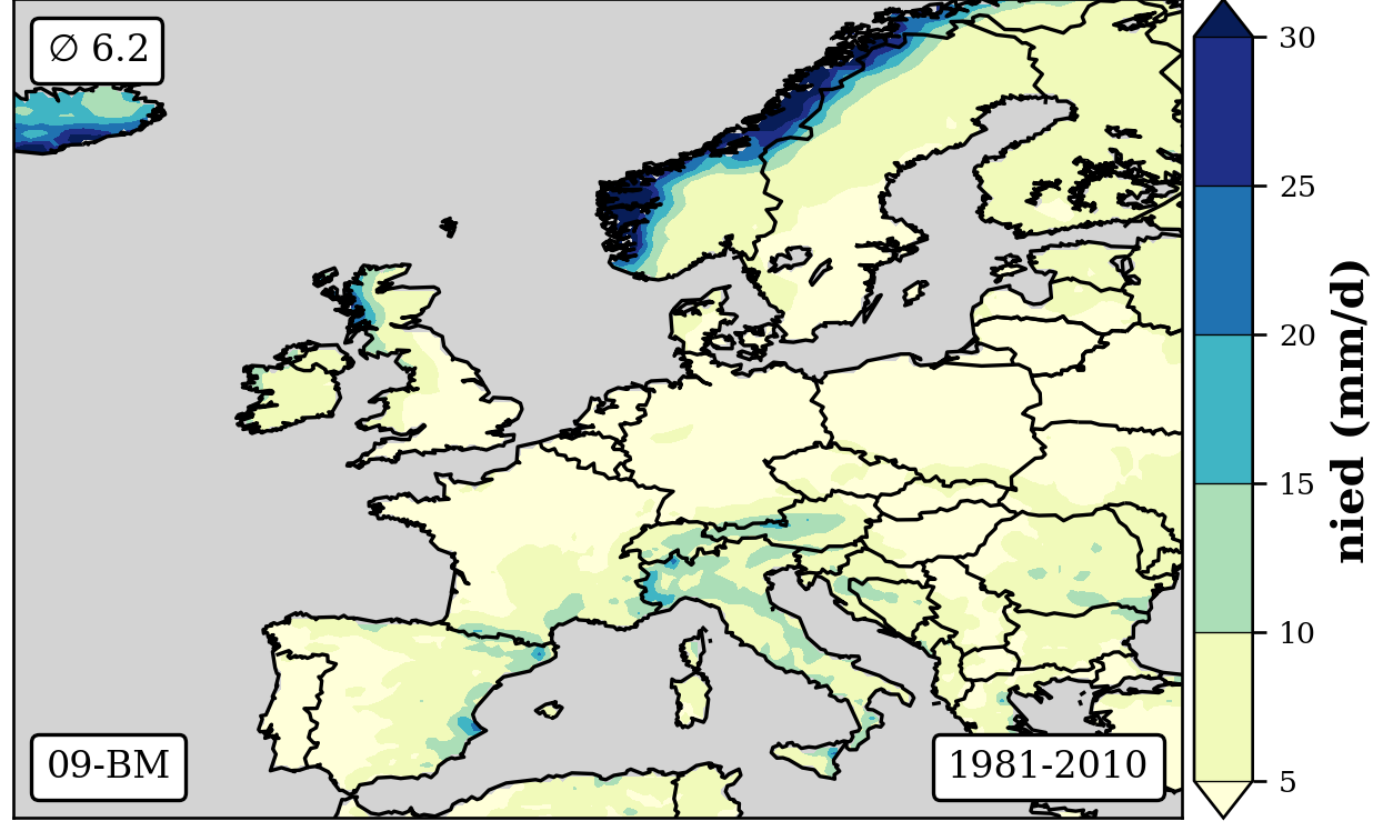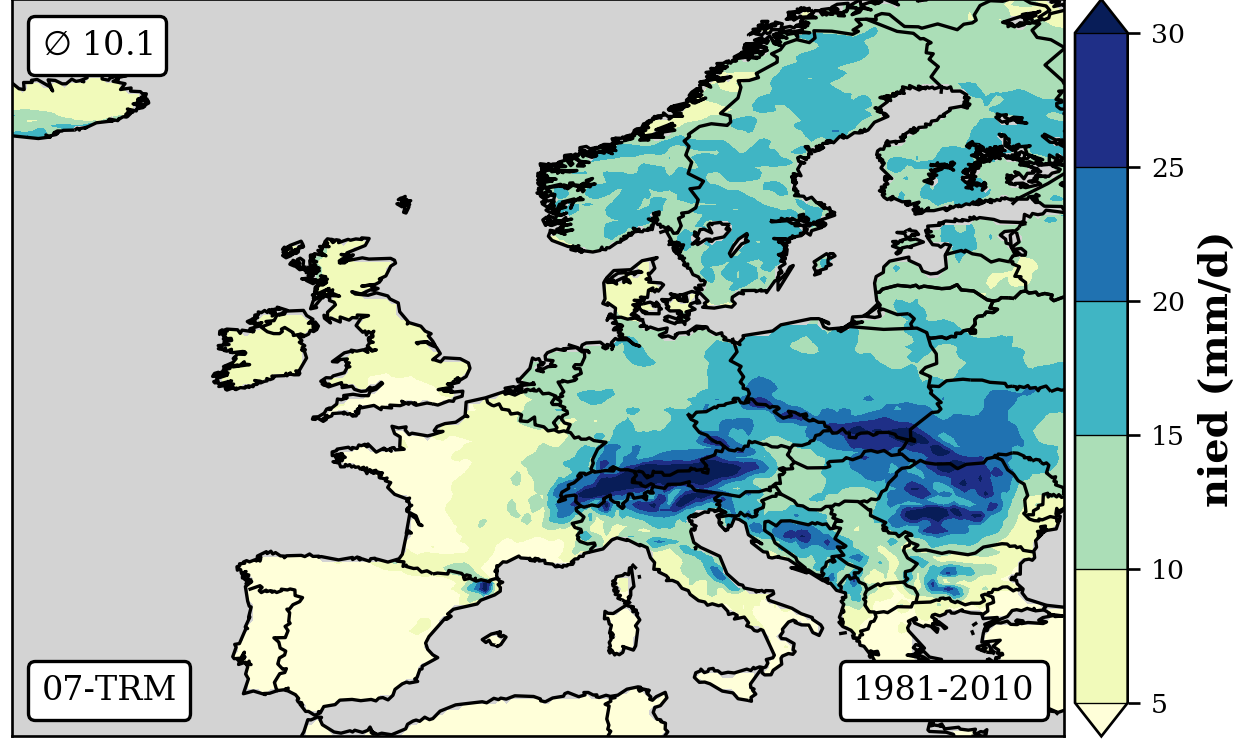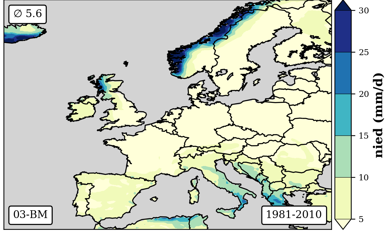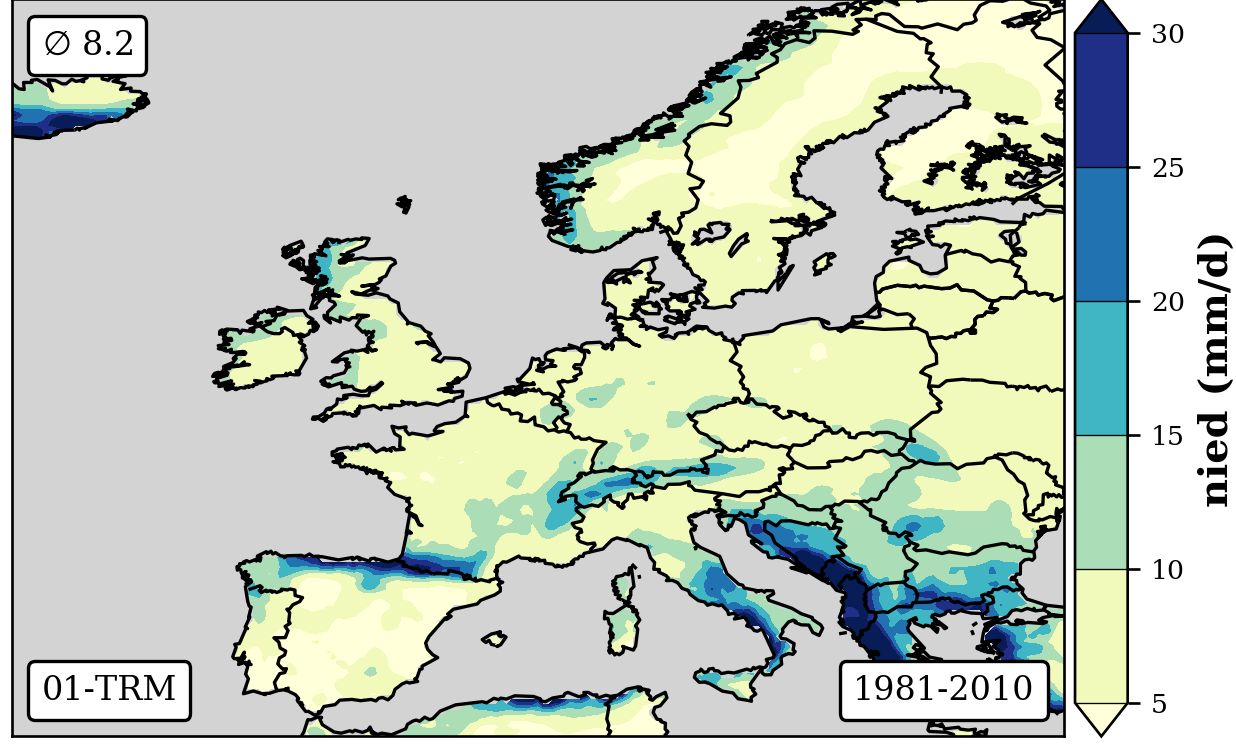 cbar.set_label('nied (mm/d)',fontsize=12,weight='bold')
