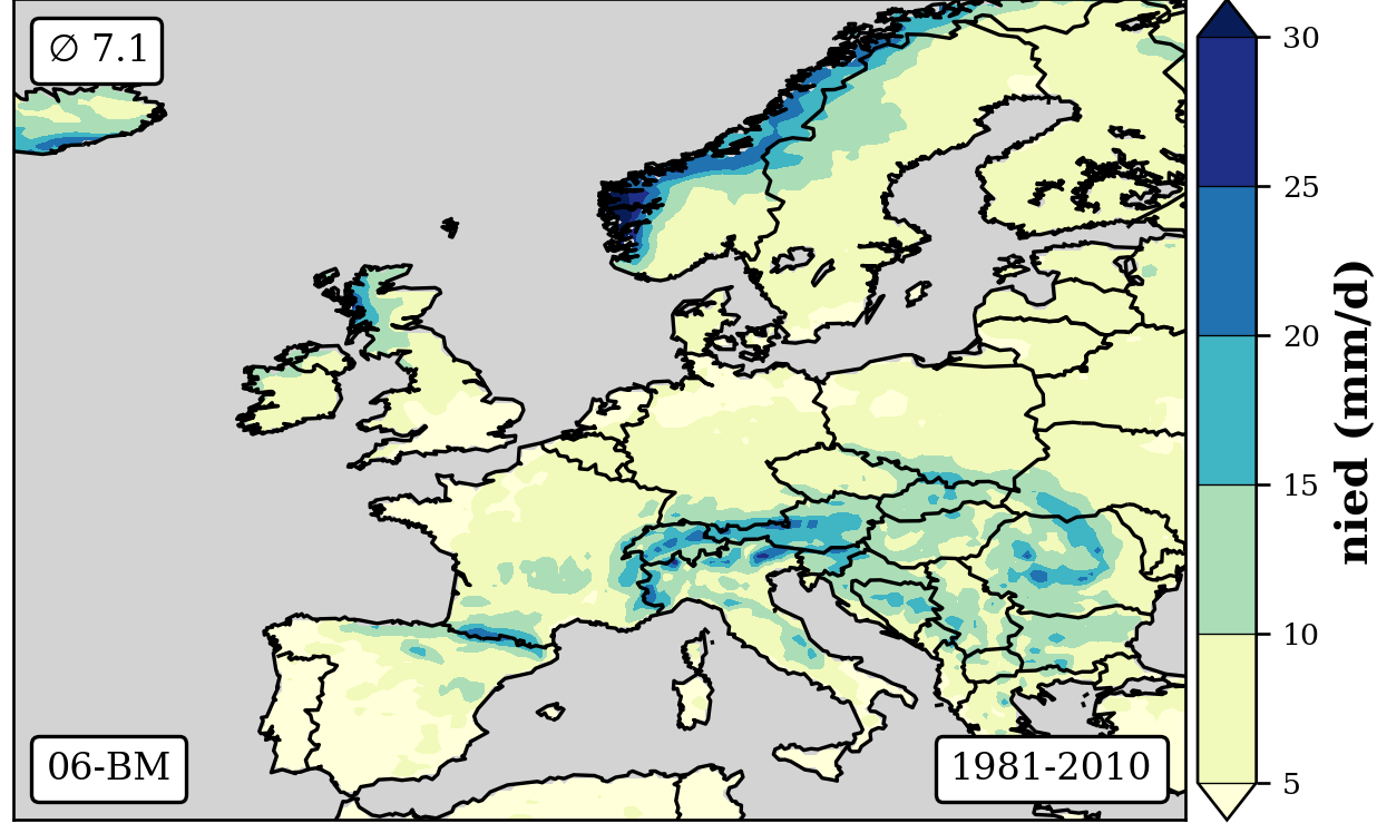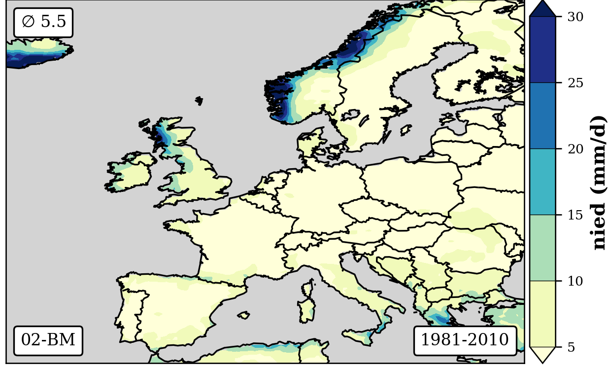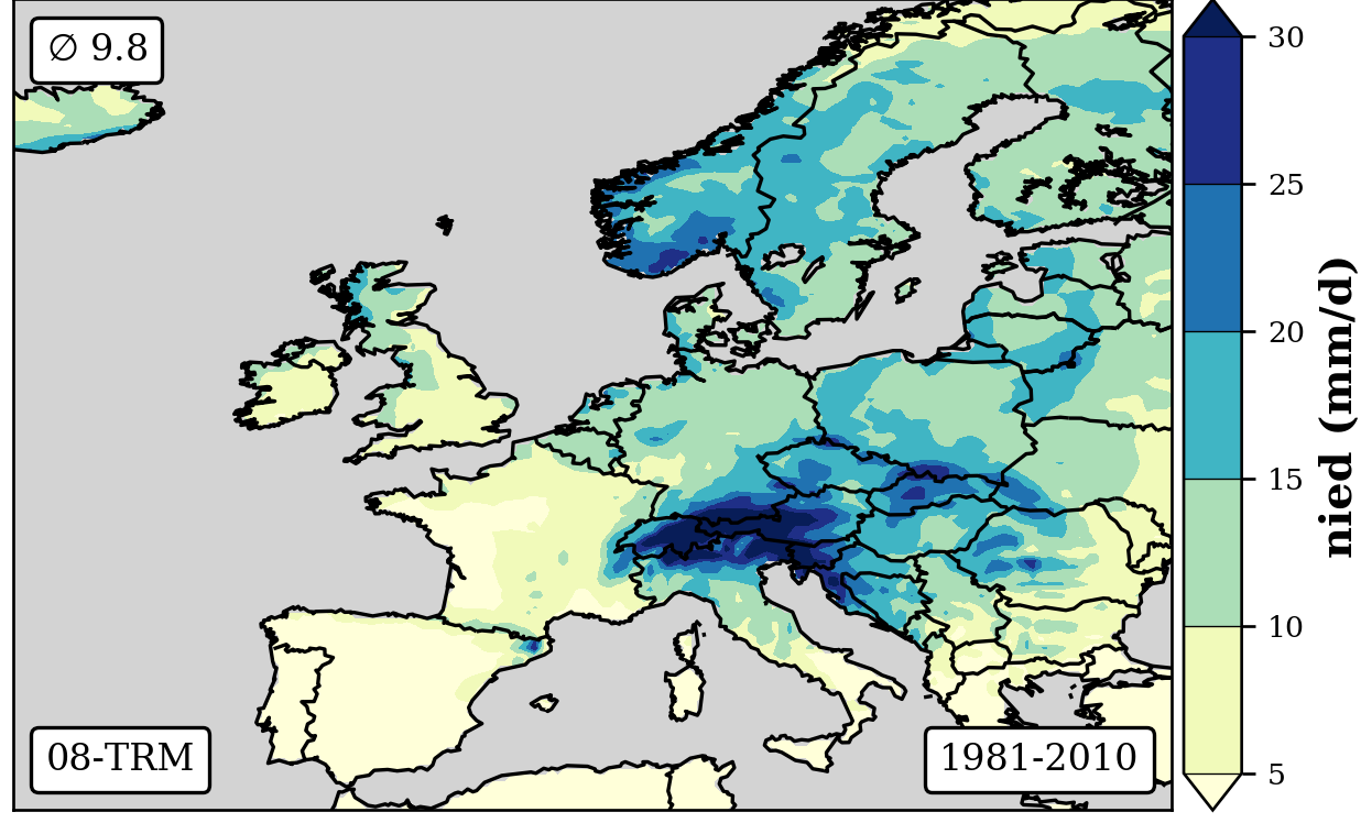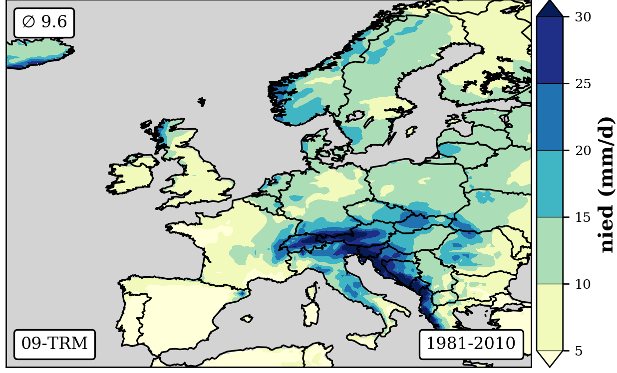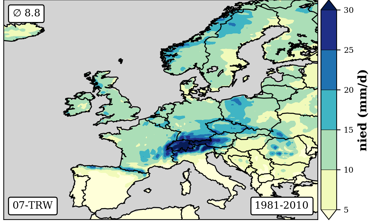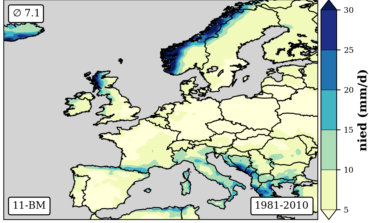 cbar.set_label('nied (mm/d)',fontsize=12,weight='bold')
