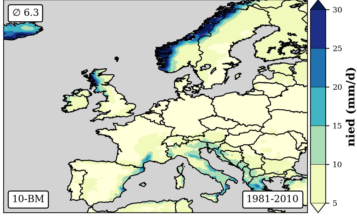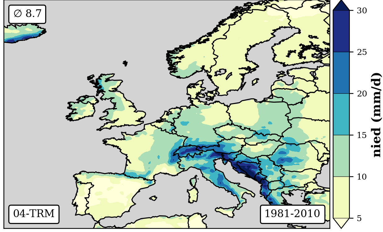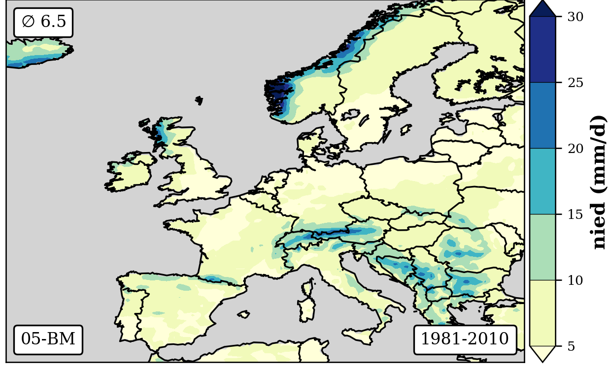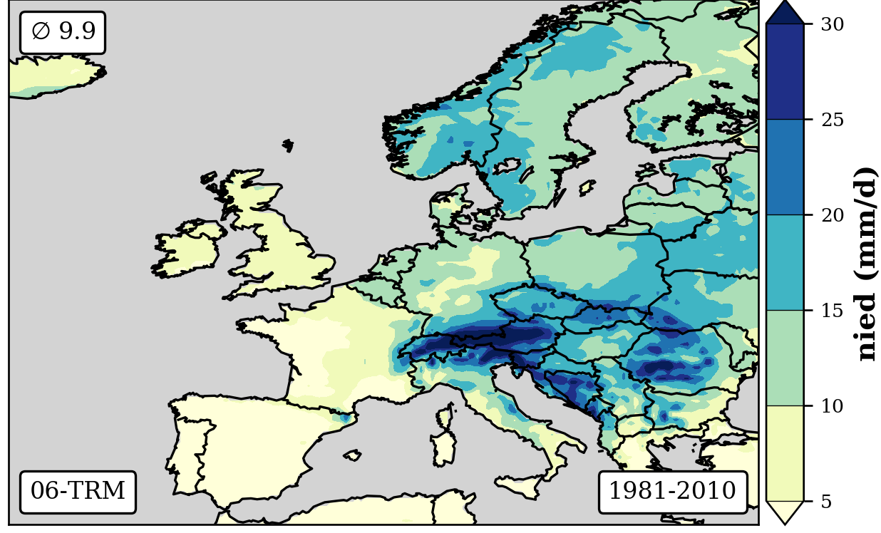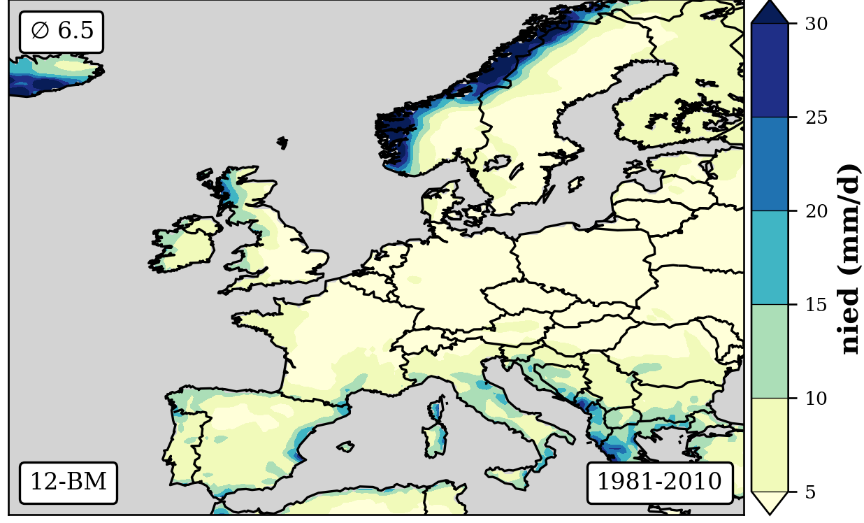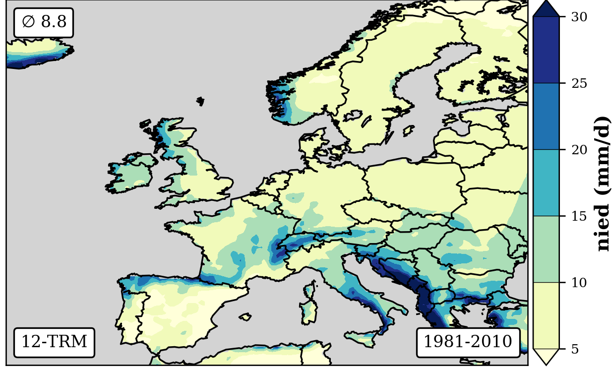 cbar.set_label('nied (mm/d)',fontsize=12,weight='bold')
