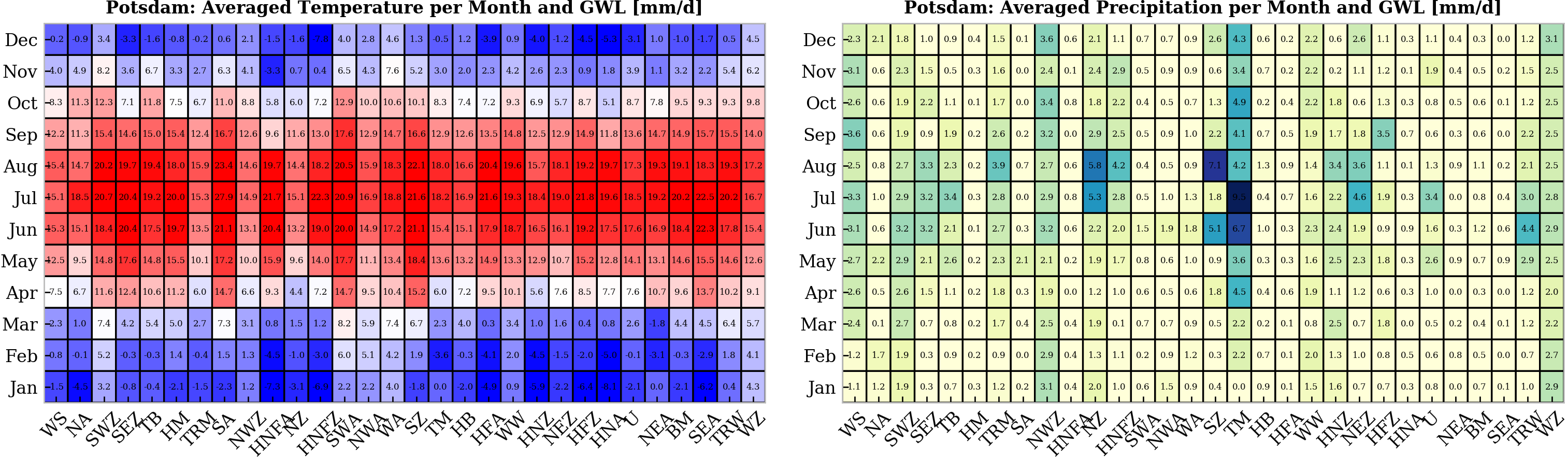 Long-term monthly averaged temperature and daily precipitation per