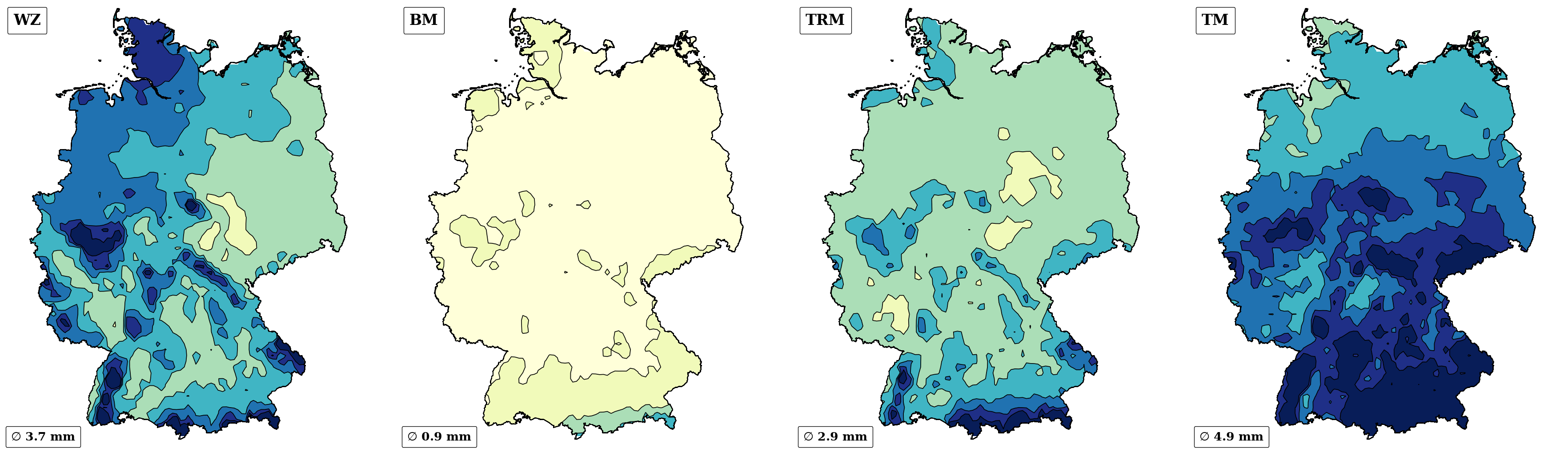 WZ (unbeständig) BM (trocken) TRM (feucht) TM (nass)