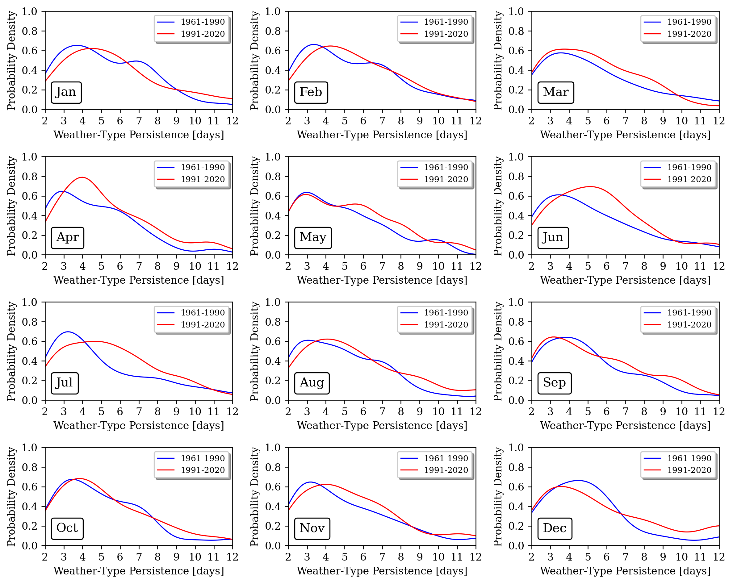 Ähnlichkeit aufeinanderfolgender Strömungsmuster vor allem von April bis Juli