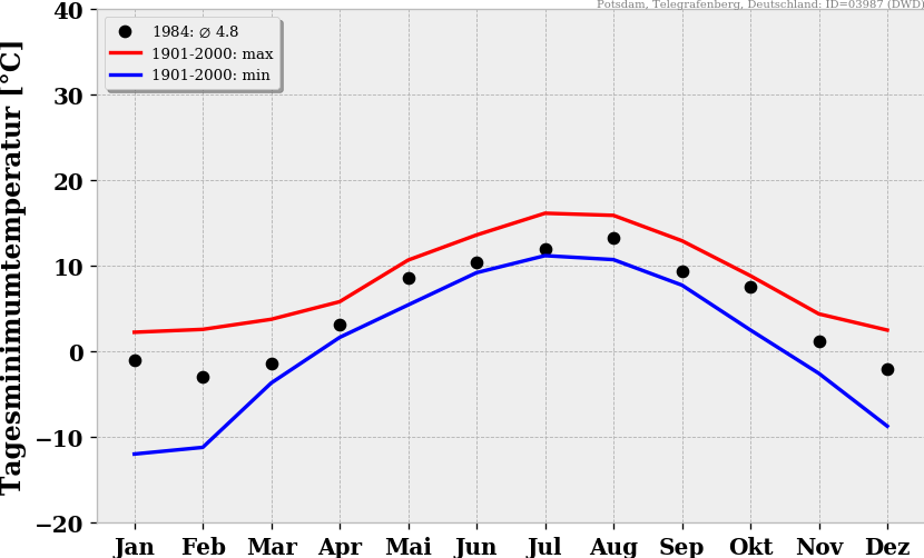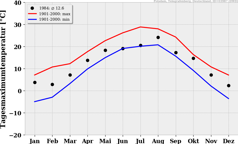 | Tagesminimumtemperatur | Tagesmitteltemperatur | Tagesmaximumtemperatur |