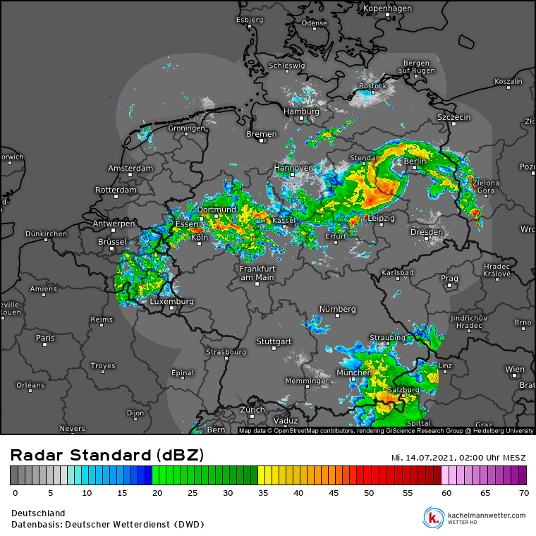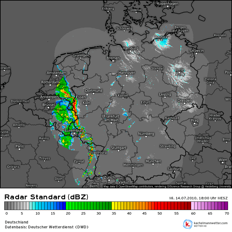 mitunter begleitet durch Hagel, Blitzeinschlag und Sturmböen