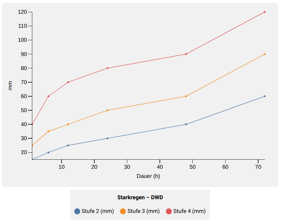 Stufe 3 (gelb): Starkregen/Dauerregen