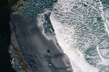 ![]() Waiho beach, a typical New Zealand West Coast beach (Spot the helicopter... click to see enlarged section) |