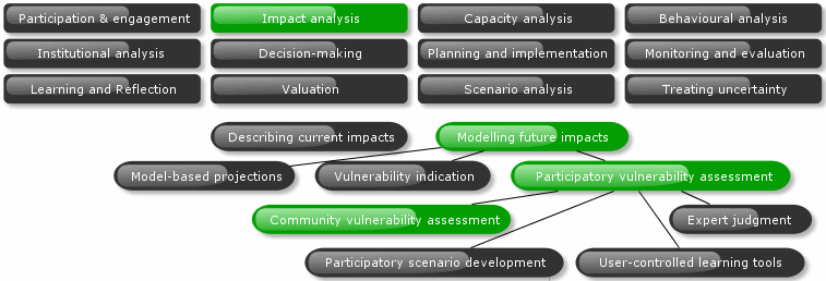 | Case study: CARE Community Vulnerability and Capacity Assessment process CARE created its Community Vulnerability and Capacity Assessment (CVCA) process in order to analyse the various factors that determine vulnerability to climate change. The process involves participatory analysis, which engages all stakeholders in understanding climate-related challenges, identifying adaptation solutions, and taking steps towards those solutions. As with all participatory approaches, the process provides a framework for dialogue within communities, as well as between communities and other stakeholders. The CVCA handbook is currently available in English, Spanish, French and Portuguese, and provides an overview of the methodology, as well as practical guidance for using it in the design and implementation of adaptation actions. One example of the use of the CVCA process was in Ecuador, Peru and Bolivia for the Regional Project for Adaptation to the Impact of Rapid Glacier Retreat in the Tropical Andes (PRAA). Glacial retreat not only limits water availability, but also increases exposure to geomorphological hazards, such as landslides, mudslides and lake outbursts. Use of CVCA highlighted the differential nature of vulnerabilities, and thereby enabled appropriate adaptation responses to be identified. For more information, see www.careclimatechange.org/cvca |